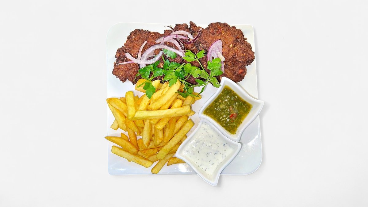 aus Kalbfleisch mit Salat und einer Beilage deiner Wahl