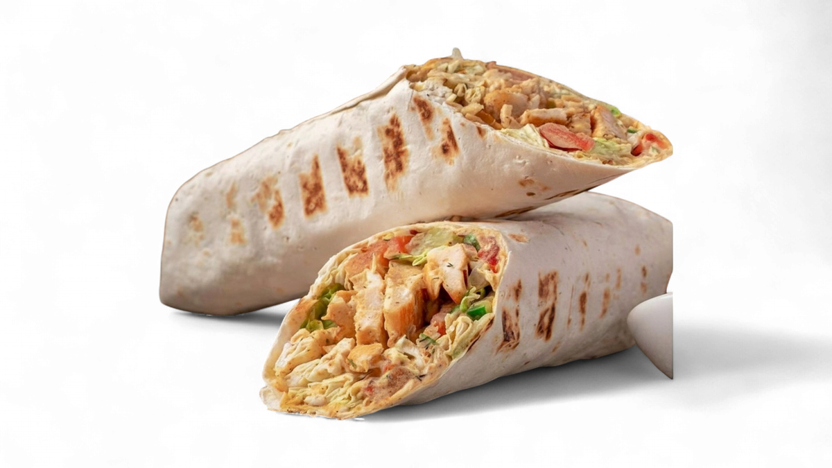 aus Kalbfleisch eingerollt in Fladenbrot mit Salat und einer Soße deiner Wahl