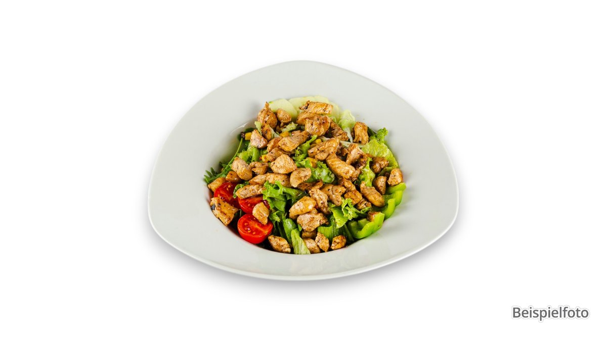 alle Salate werden mit grünem Salat, Tomaten, Gurken, Mais, Zwiebeln und Möhren zubereitet und mit einem Dressing deiner Wahl serviert