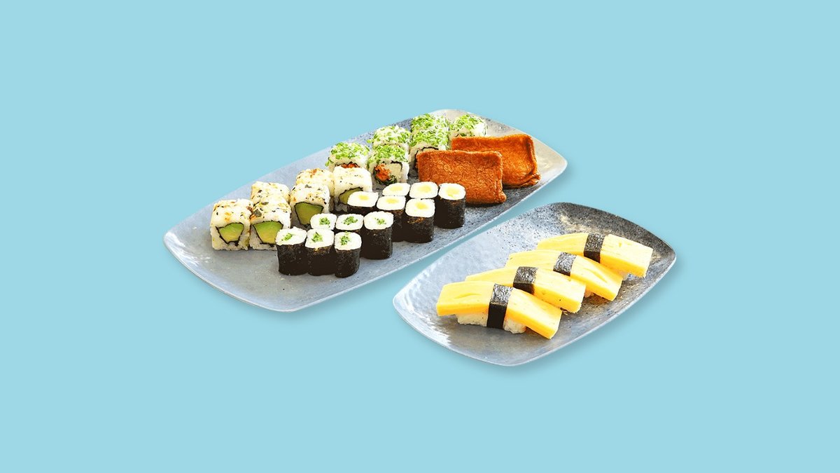 30 Stück 6x Kappa Maki 6x Oshinko Maki 6x Veggie Roll 6x Creme Cheese Rol 4x Tamago Nigiri 2x Inari