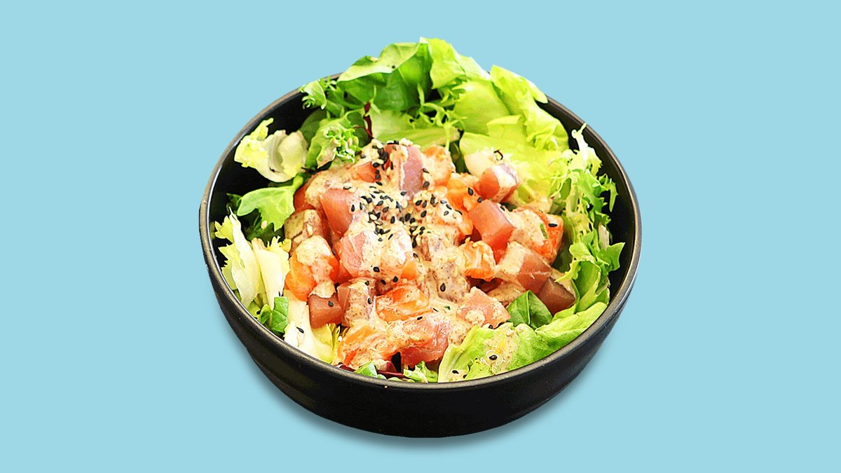 ca. 400 g Salat mit Thunfisch, Lachs und Sesam-Dressing