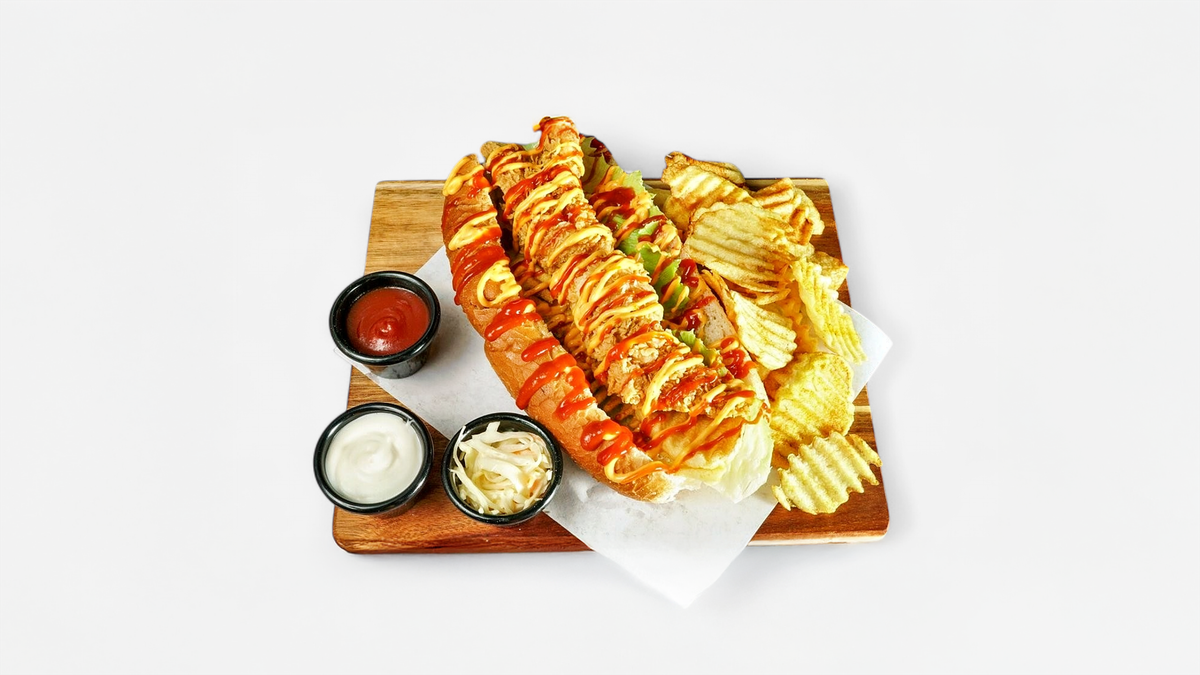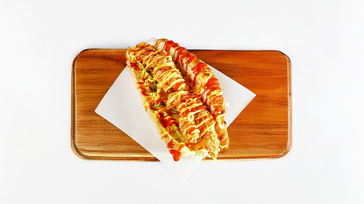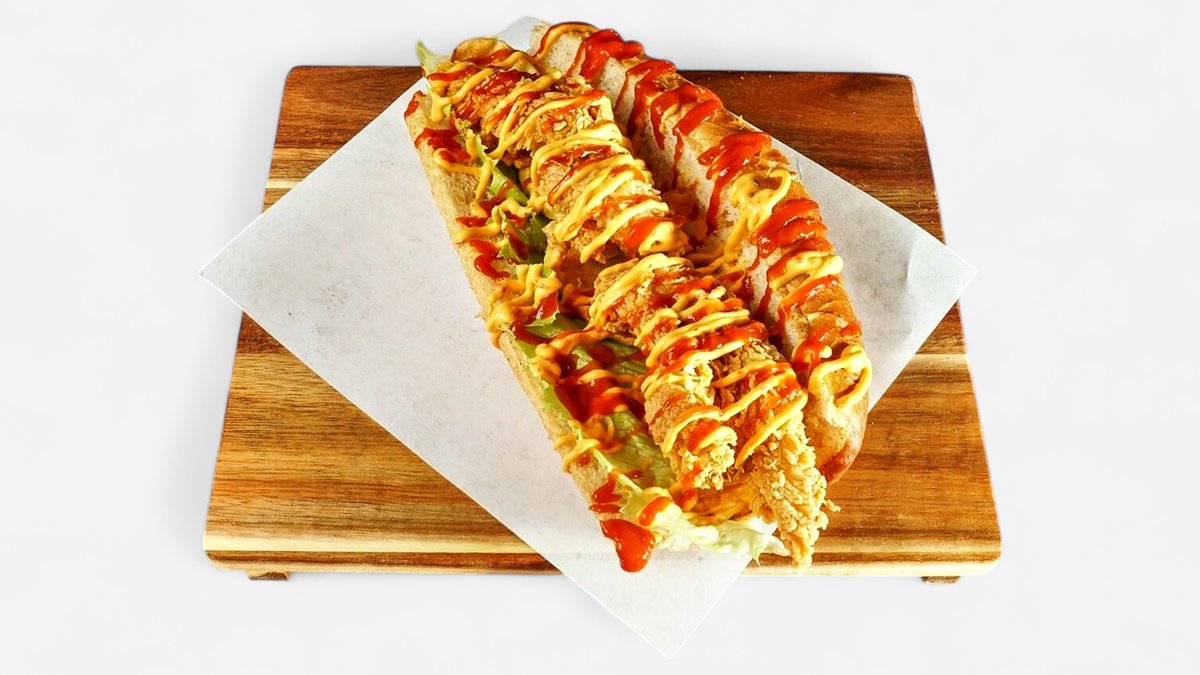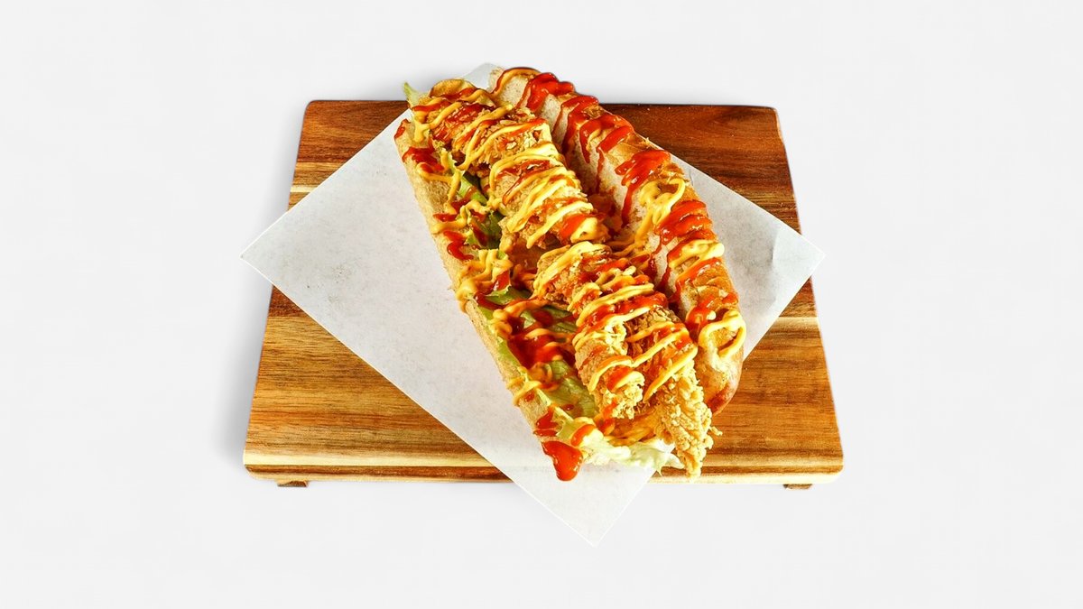 alle Baguettes werden mit Krautsalat, scharfer Aioli-Spezialsoße und Gewürzgurken zubereitet („29. Crispy Classic Baguette”, „30. Crispy Cheese Baguette” und „33. Crispy BBQ Baguette” werden mit normaler Aioli-Spezialsoße zubereitet)