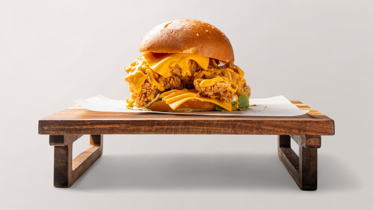 alle Gerichte werden mit Krautsalat, scharfer Aioli-SpezialsoĂe und GewĂŒrzgurken zubereitet (â41. Crispy Classic Burgerâ, â42. Crispy Cheeseburgerâ und â45. Crispy BBQ Burgerâ werden mit normaler Aioli-SpezialsoĂe zubereitet)