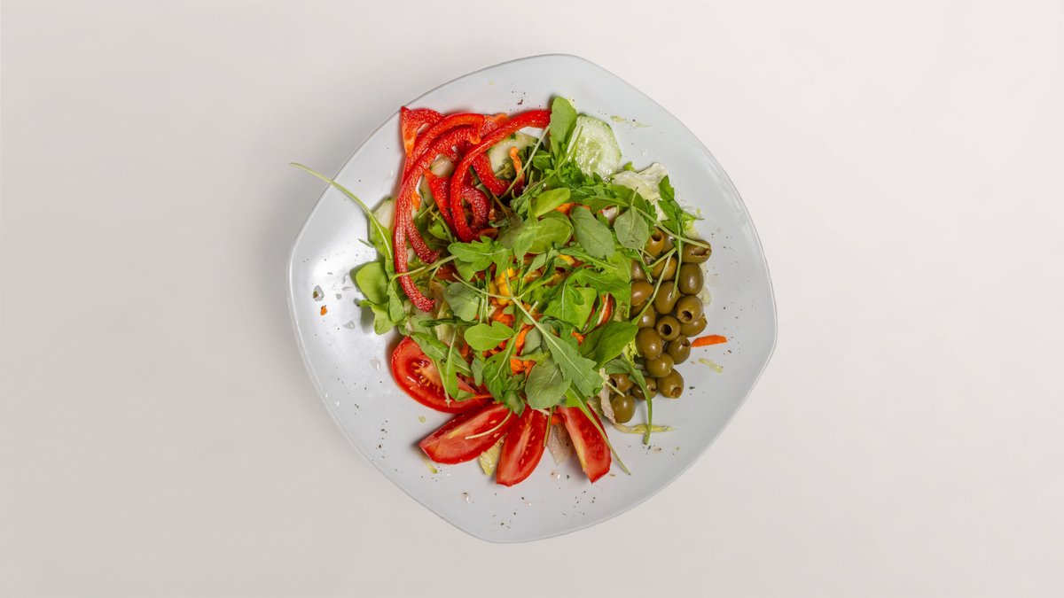 alle Salate werden mit Dressing deiner Wahl, 3x Pizzabrötchen, grünem Salat, Mais, Karotten, Gurken und Tomaten zubereitet