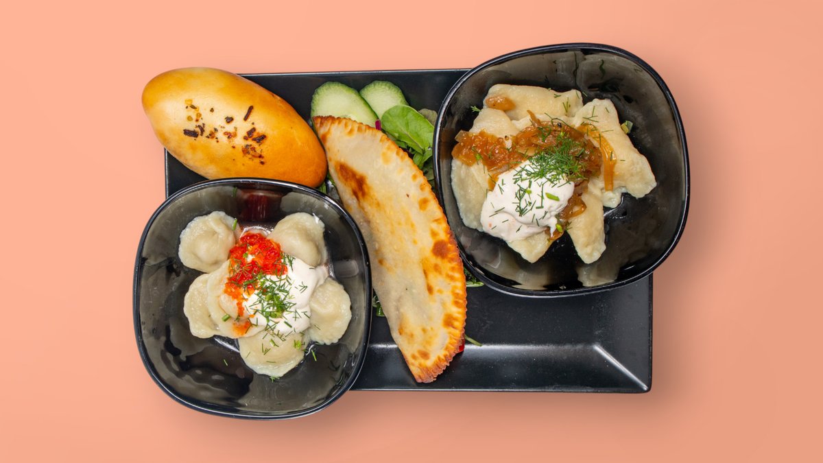 ab 2 Personen, mit Tscheburek vom Rind, Piroschok deiner Wahl, Pelmeni, Wareniki und Salat