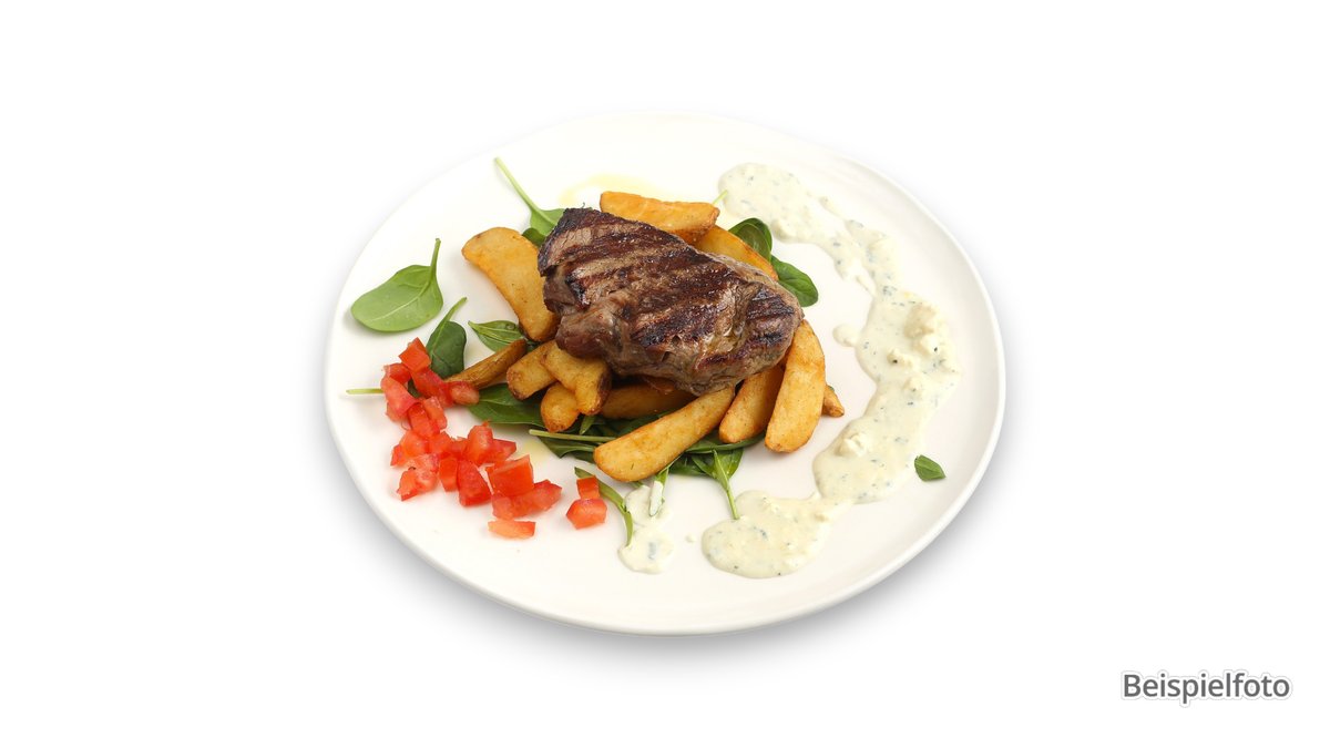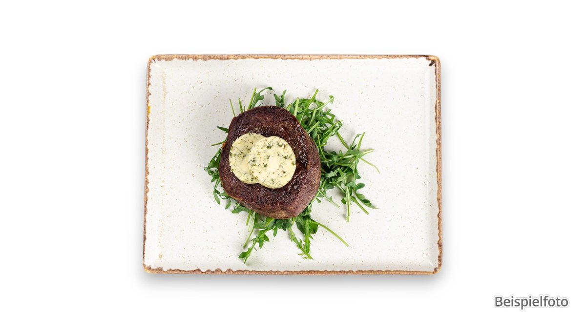 ca. 250 g mit Steak vom Rind, Kräuterbutter und Salat
