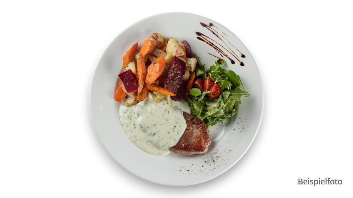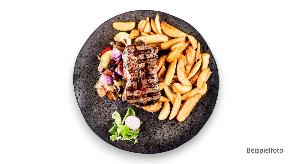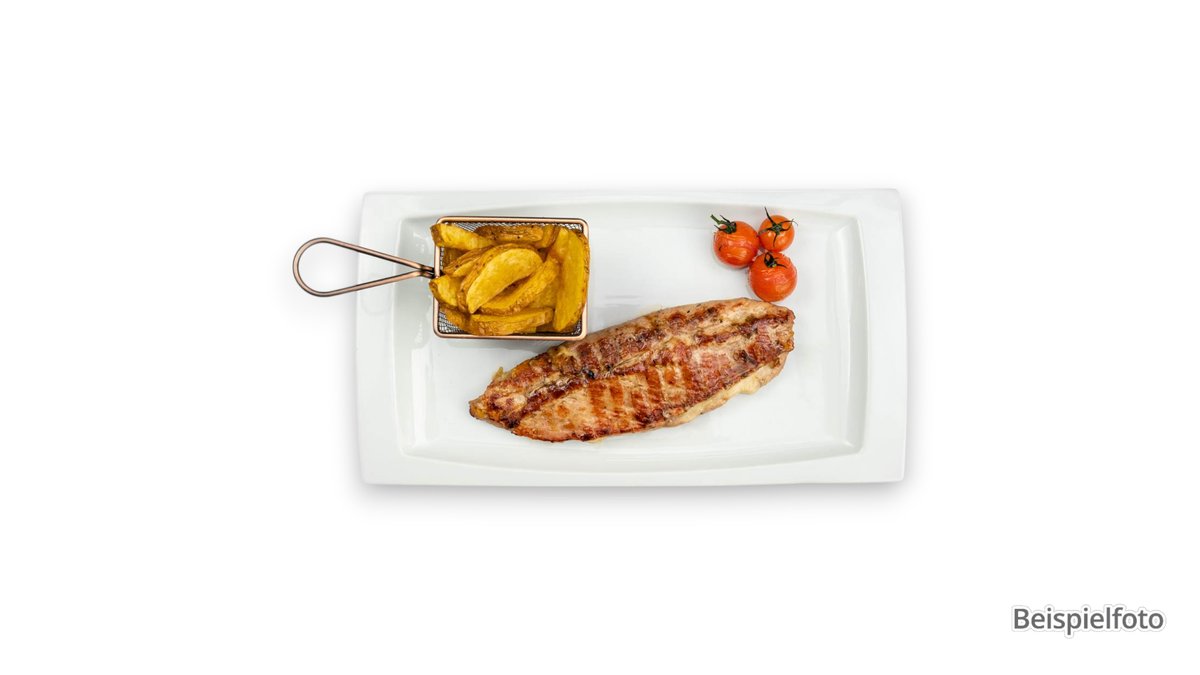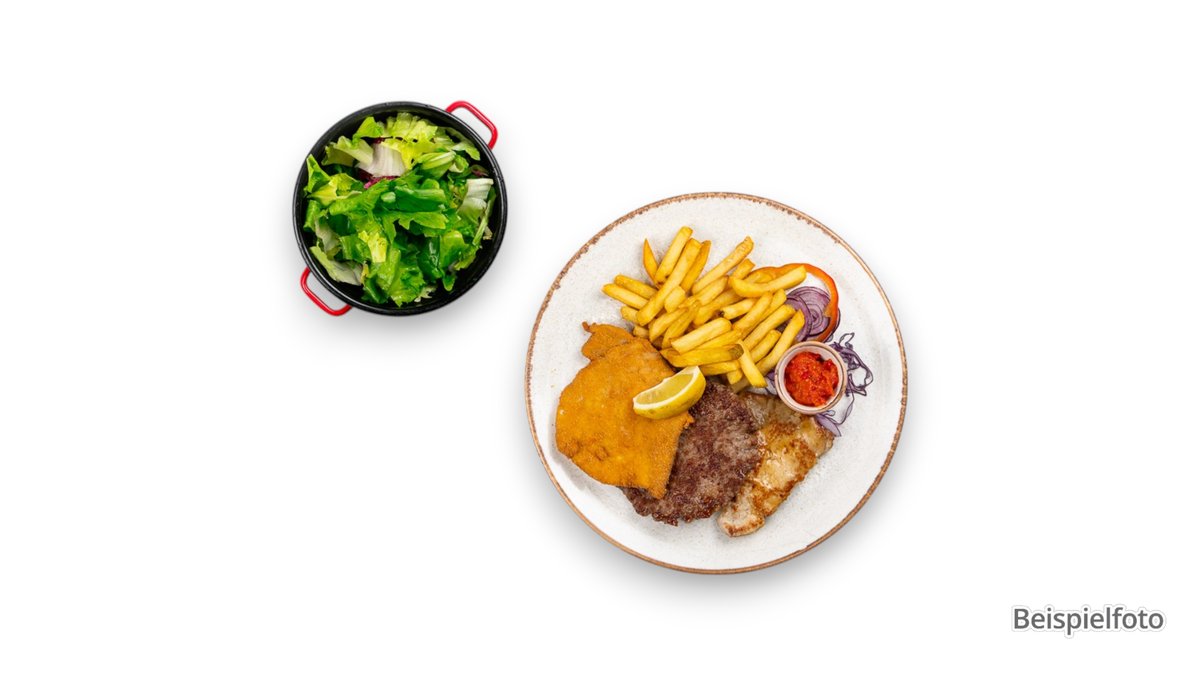 für 2 Personen mit 2 kleinen Balkan-Steaks vom Schwein, 2 kleinen Wiener Schnitzel vom Schwein, 2 Medaillons vom Schwein, 2 Cevapcici vom Schwein und Pommes frites