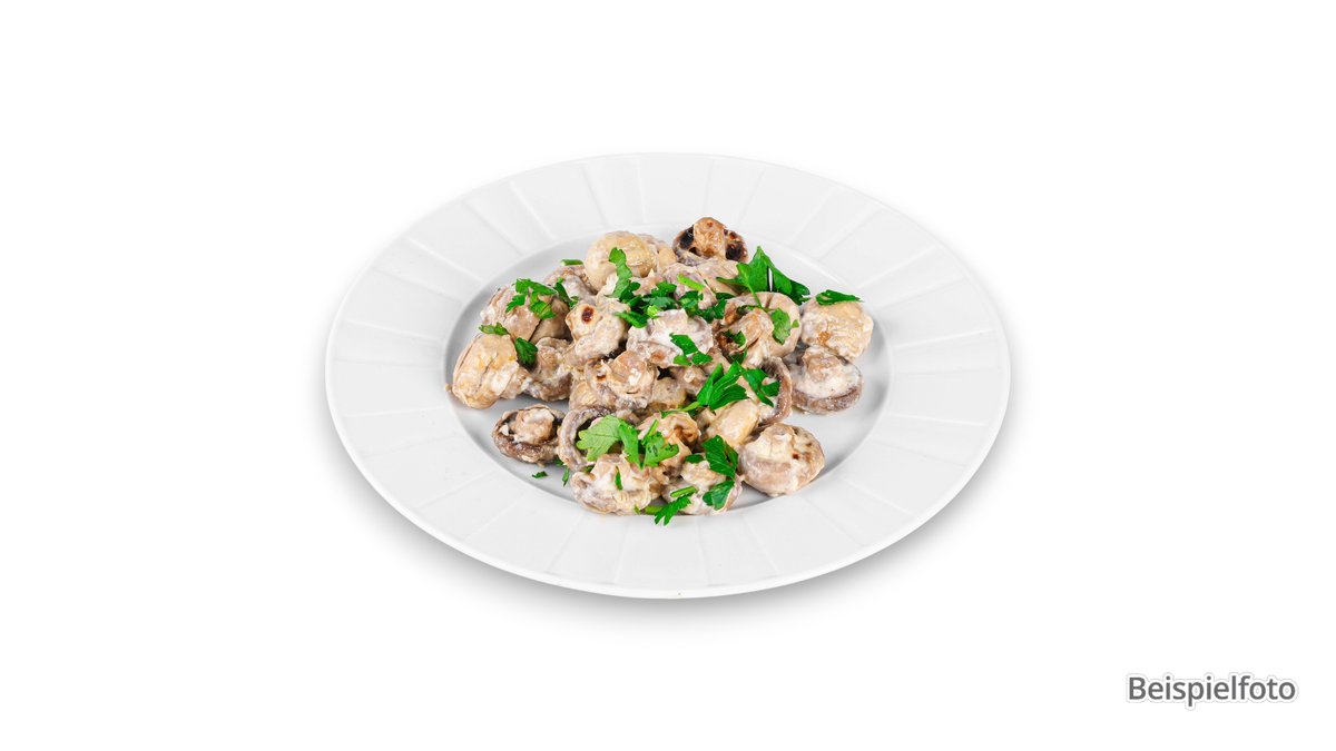 nach Art des Hauses auf Champignonköpfen mit Knoblauchsoße Enthält Alkohol, für Kinder und schwangere Frauen nicht geeignet