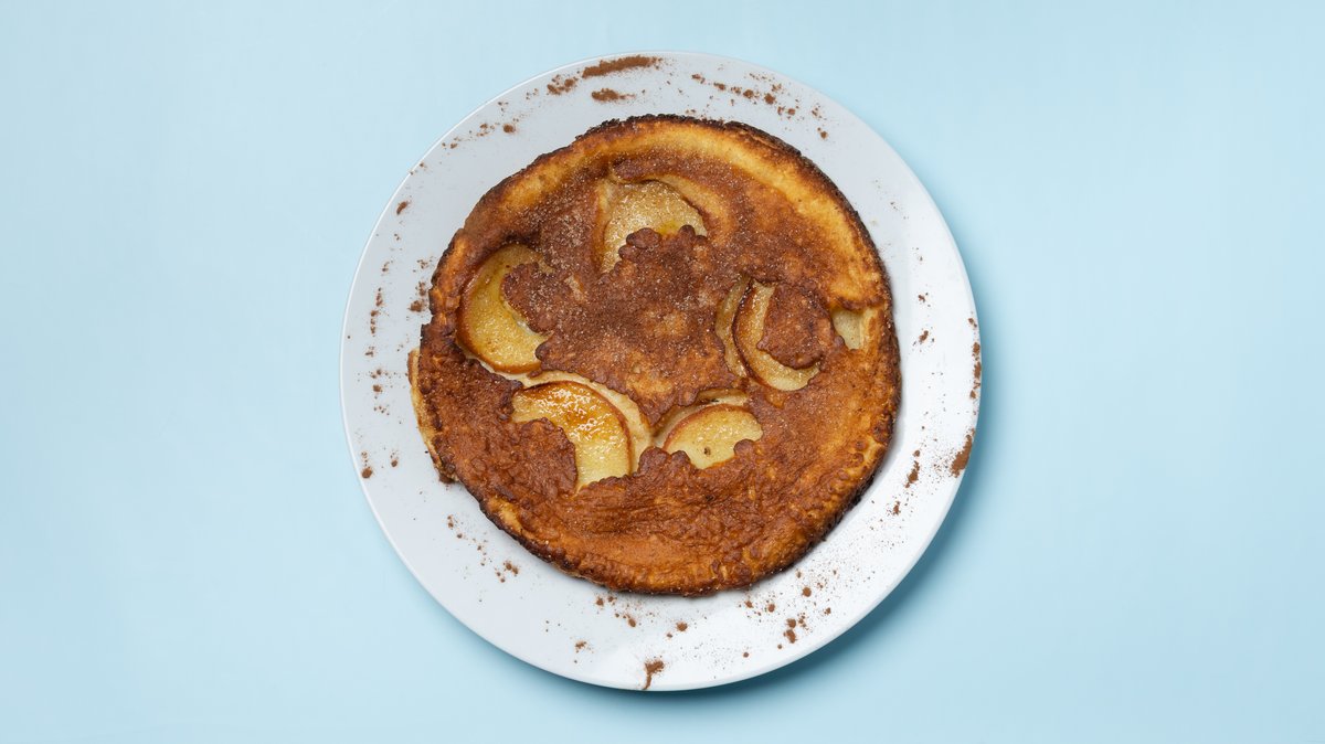 Pfannkuchen mit Apfelstücken, Zimt und braunem Zucker