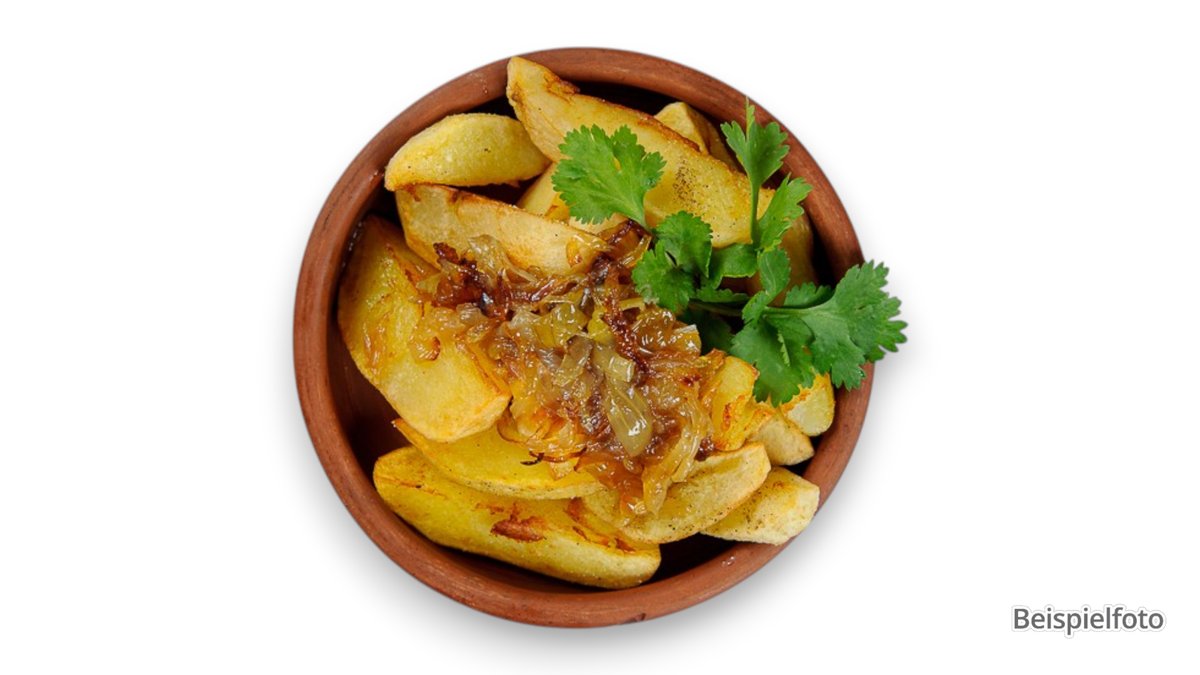 Pfannengericht aus saftigem Schweinefleisch, knusprig gebratenen Kartoffeln und Zwiebeln