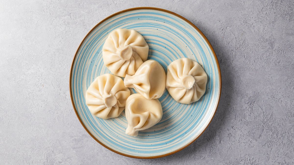 5 Stück traditionelle, georgische Teigtaschen gefüllt mit saftigem Fleisch vom Schwein und Rind und aromatischer Brühe