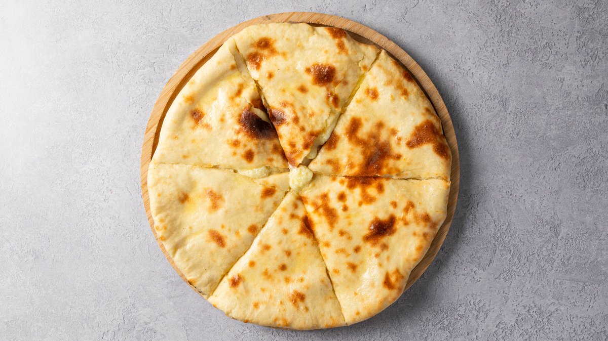 traditionelles, georgisches Käsebrot aus der Region Imereti, gefüllt mit einer Mischung aus mildem, schmelzendem Käse