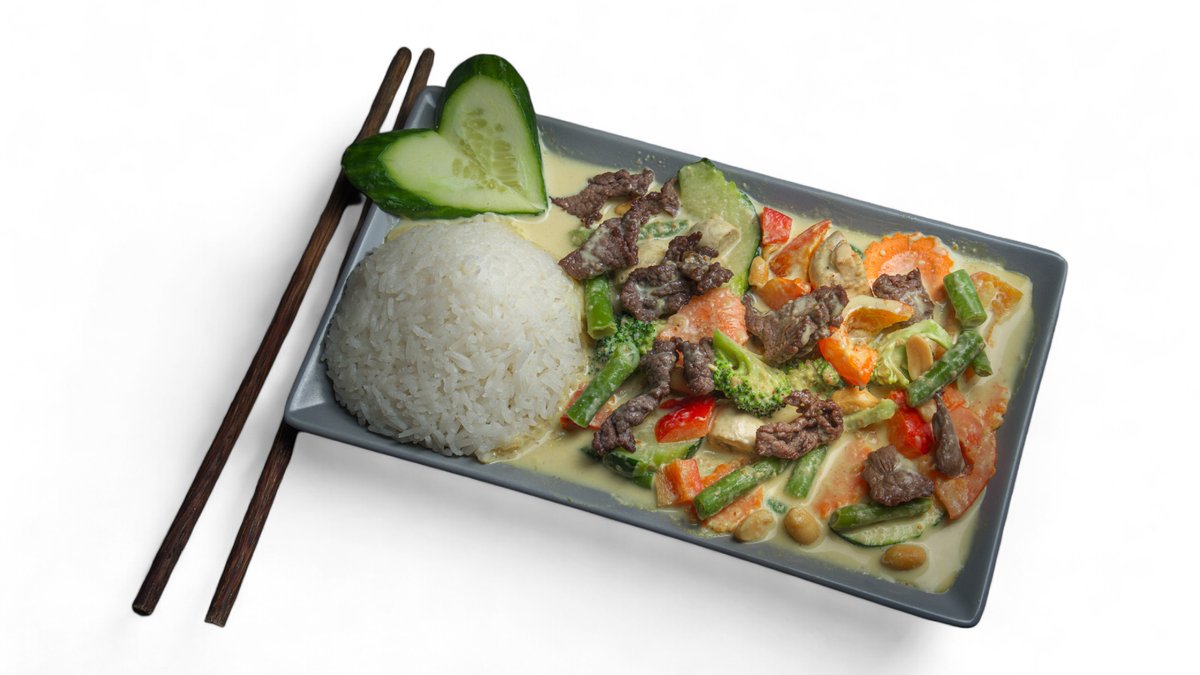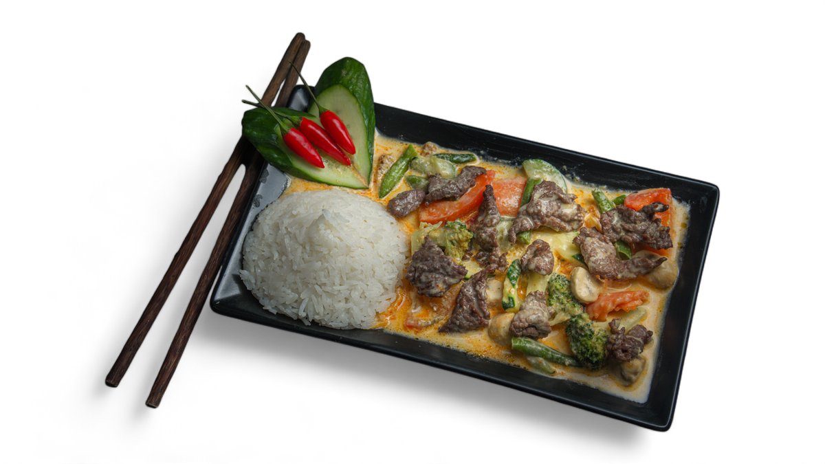 Kokoscreme Suppe mit Rindfleisch