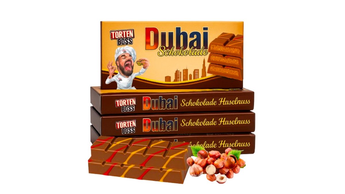 Dubai Schokolade Haselnuss feine Schokolade gefüllt mit cremiger Haselnuss. Edler Genuss mit einem Hauch von Luxus.
