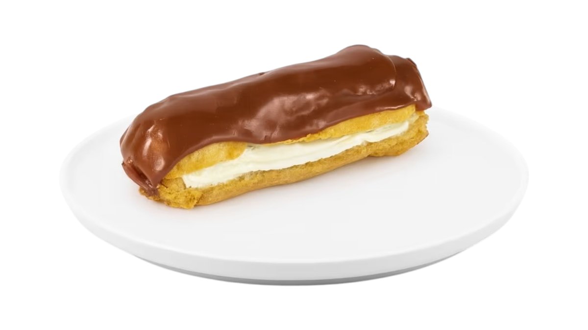 Éclair zarter Brandteig, gefüllt mit cremiger Vanillepuddingfüllung und glasiert mit feiner Schokolade. Ein französischer Klassiker.