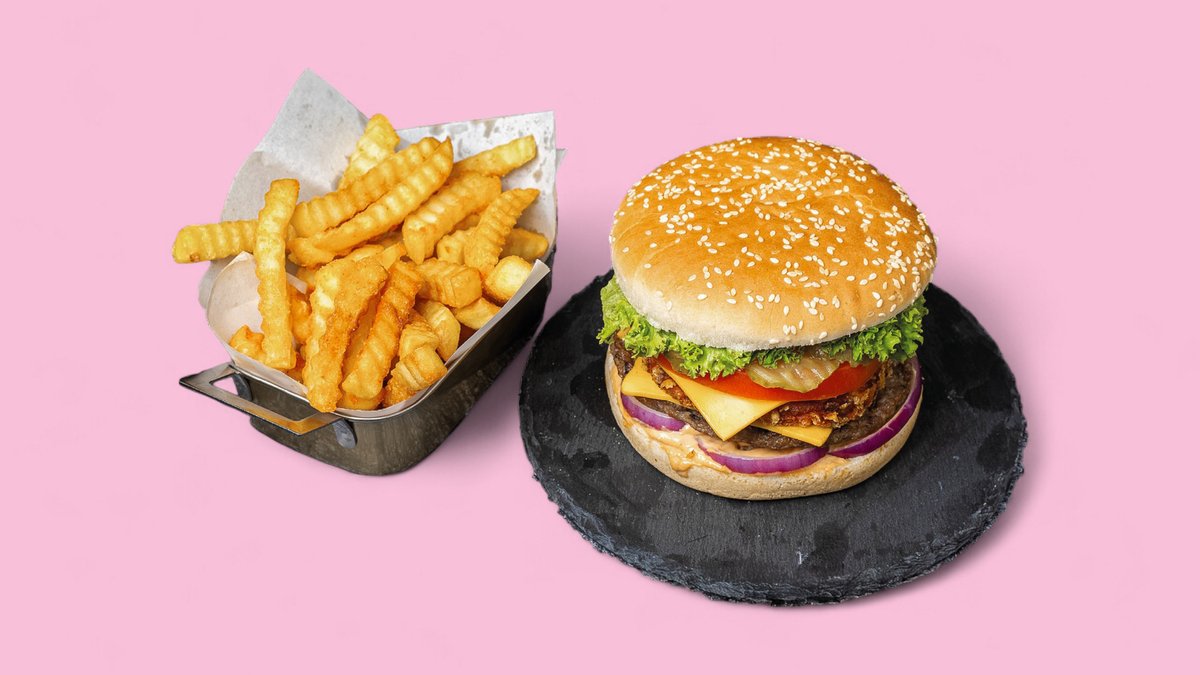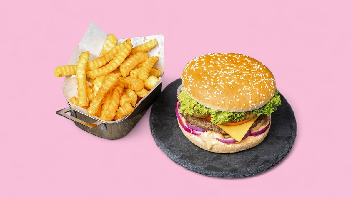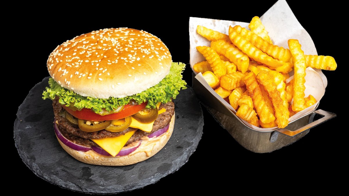 1x Doppelt-Burger (Rind) 1x Pommes frites 1x Getränk nach Wahl