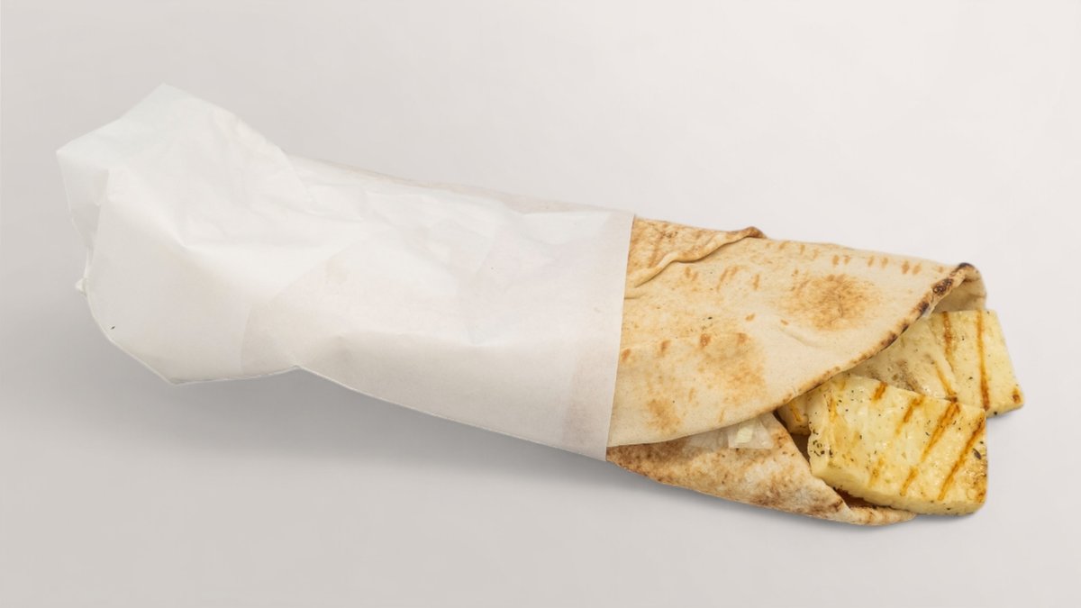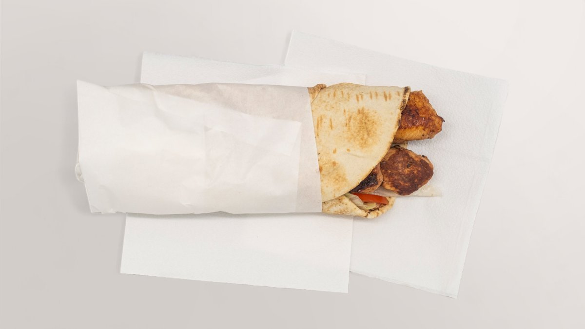 mit Hähnchenfleisch vom Spieß, eingelegten Gurken, Tomaten und Petersilie