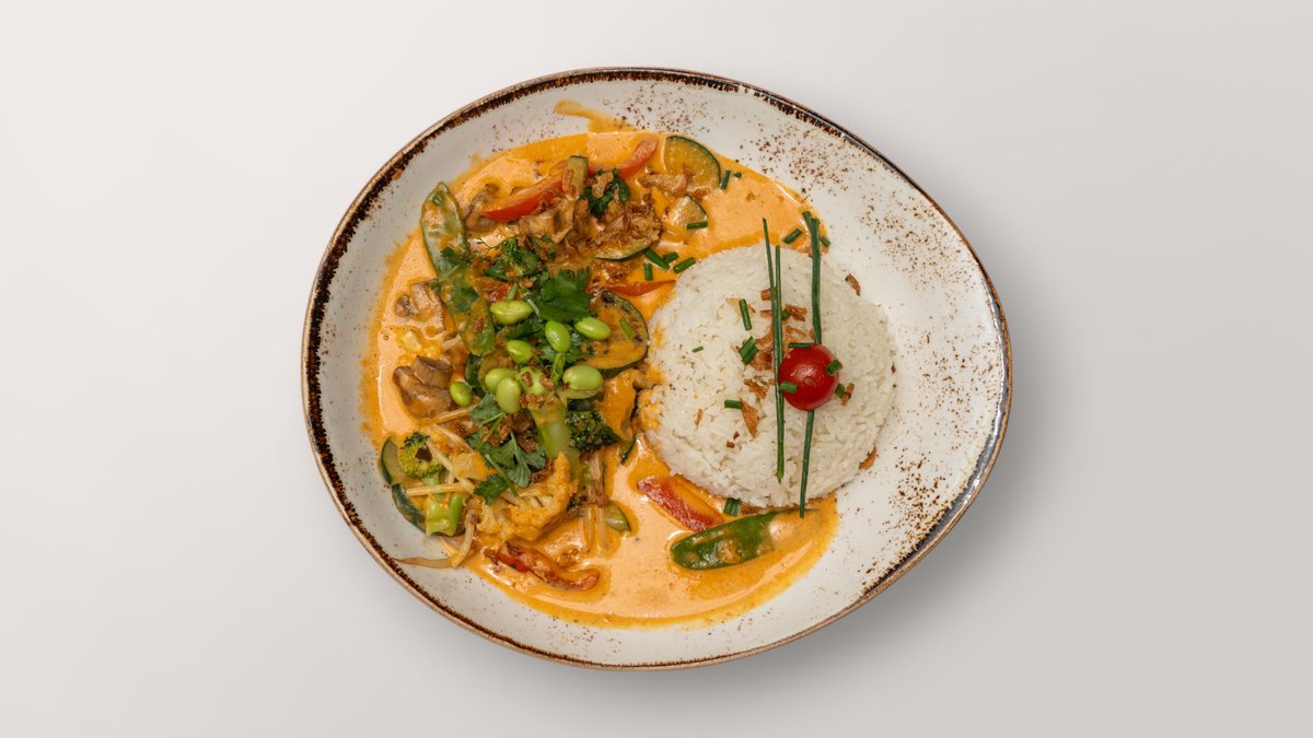 mit Kokosmilch, Thai-Basilikum und saisonalem Gemüse
