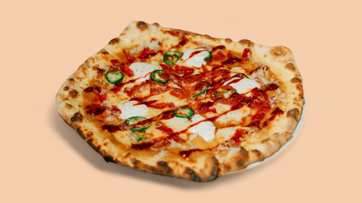 Gelbe Tomatensauce | Fior di Latte | Grana Padano | Salami Dolce | frische Jalapeños | chillaui jalapeño | Burrata | Hot Honey Crisp | Parmesanflocken| schwarzer Pfeffer