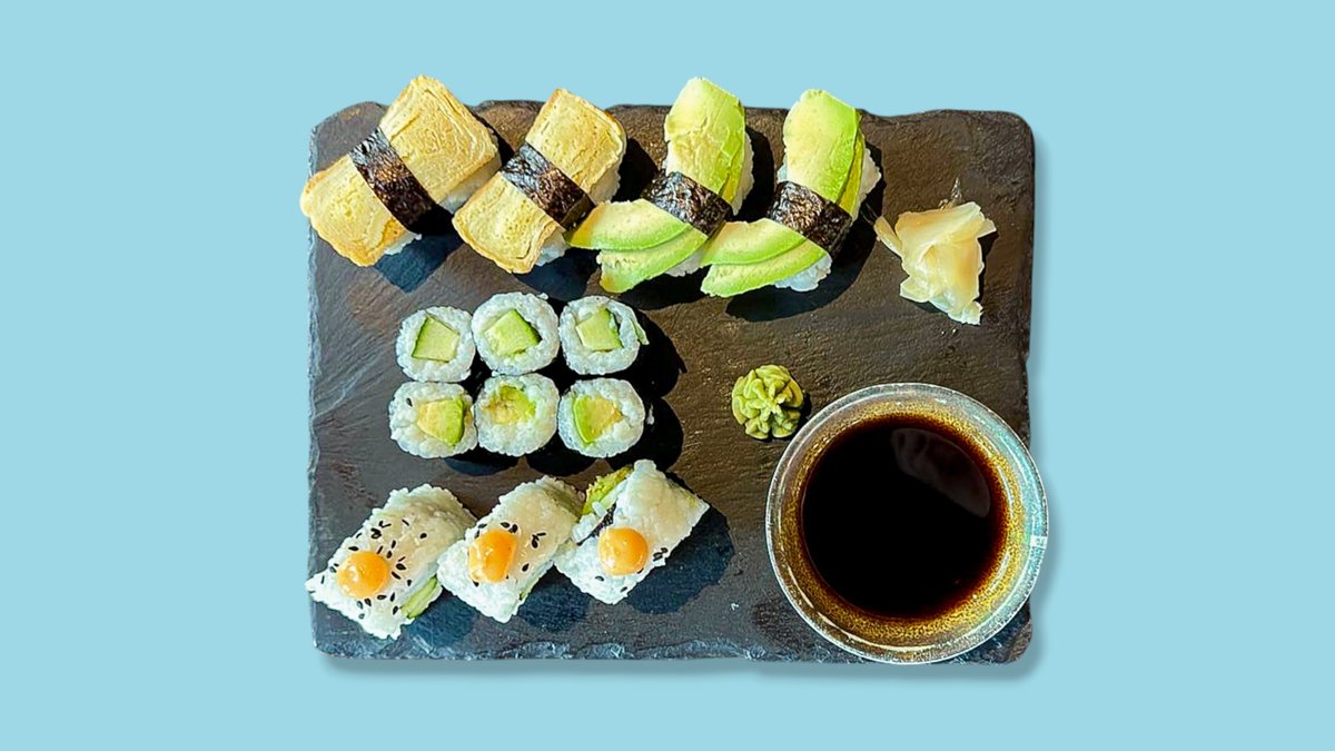 2x Tamago Nigiri 2x Inari 6x Veggie Mix Maki 2x Veggie Rolls