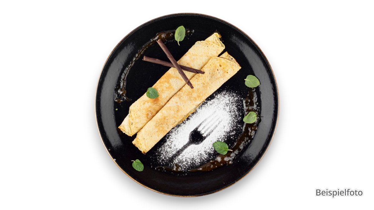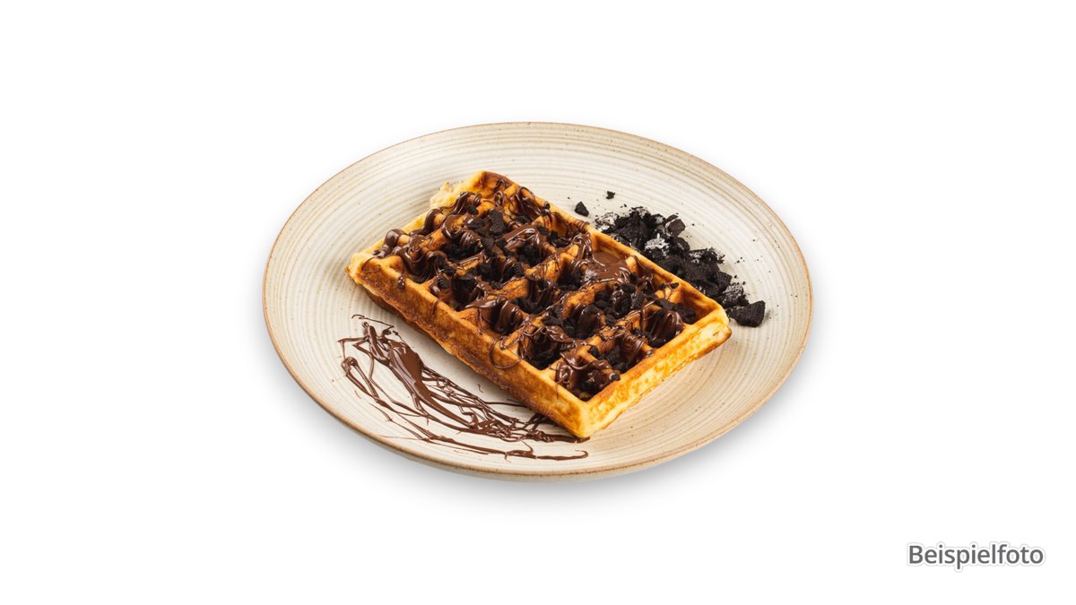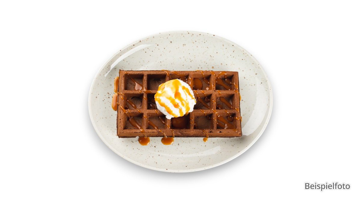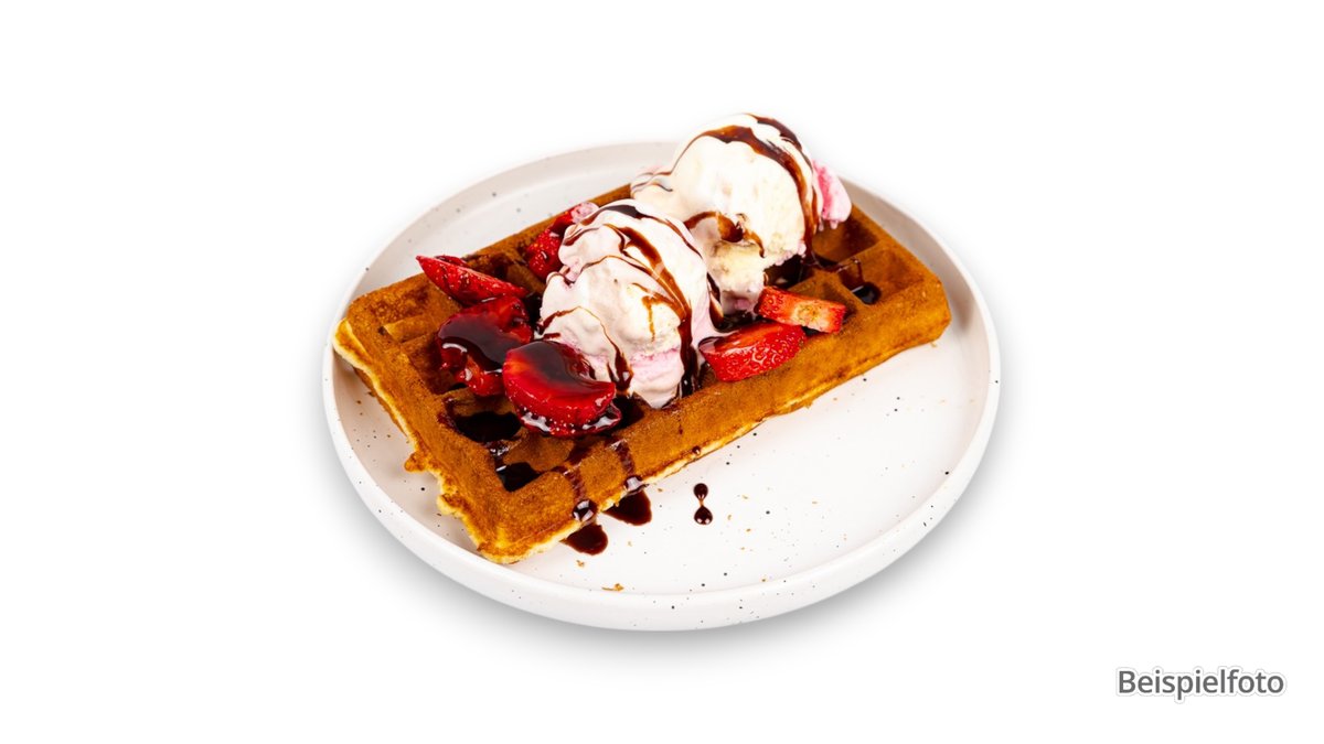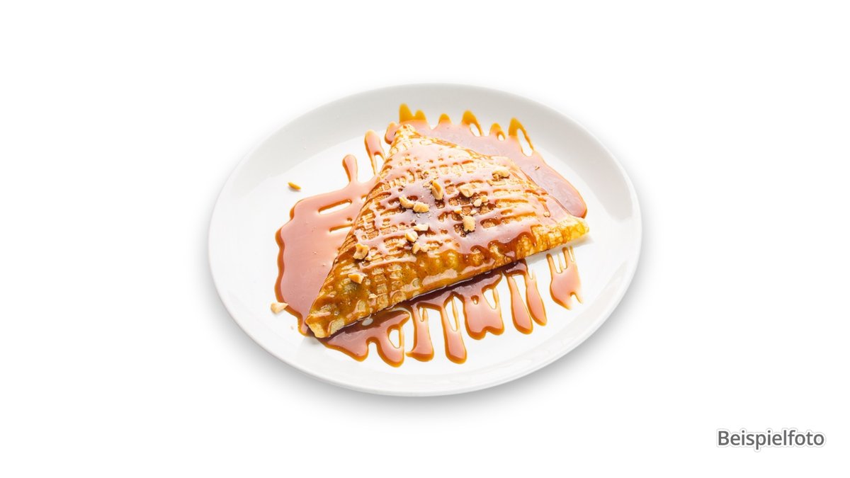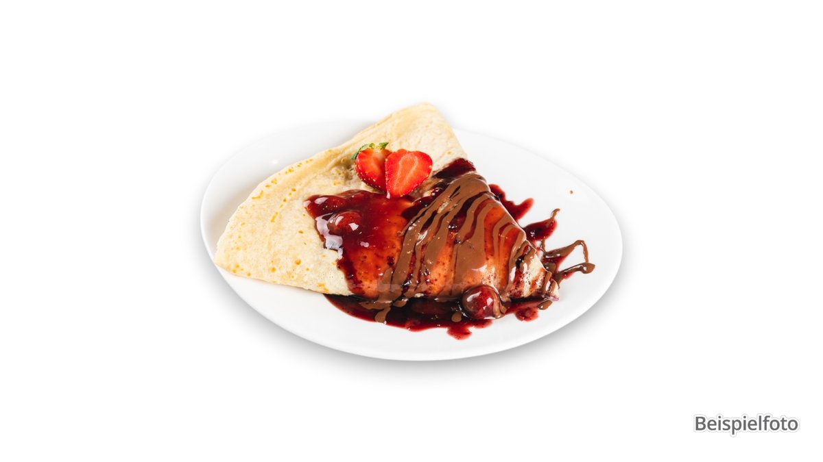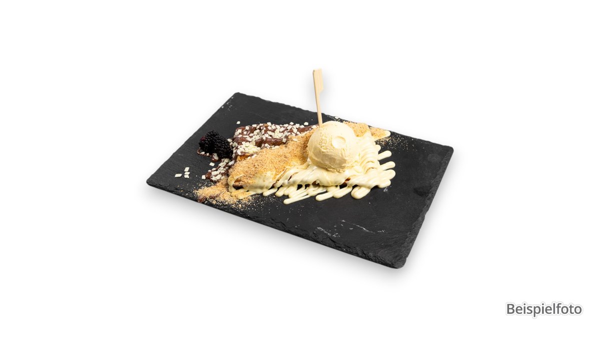 mit Vanilleeis, Sahne und Nutella Das Gericht wurde mit Schokolade zubereitet und kann Spuren von verschiedenen Nüssen enthalten