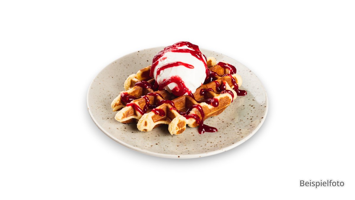 mit Vanilleeis, Sahne, Waldbeeren und Soße