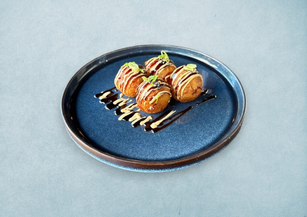 3 Stück leicht scharf mit Oktopus, Avocado, Gurken, Sesam, Frühlingszwiebeln, Ingwer und Mangosoße