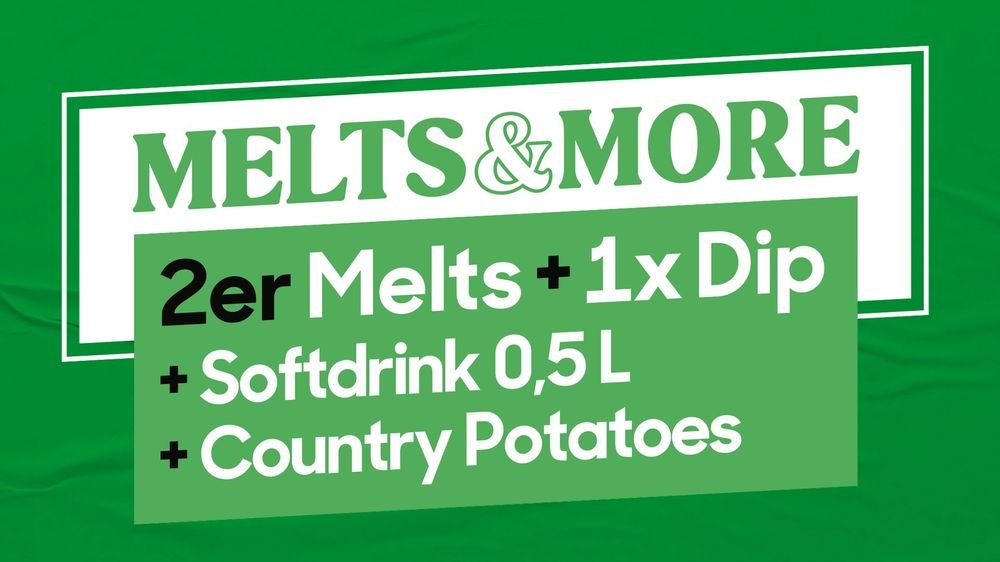 Melts & More - 2er Melts vegan + 1 x Dip + Softdrink 0,5 l + Country Potatoes
