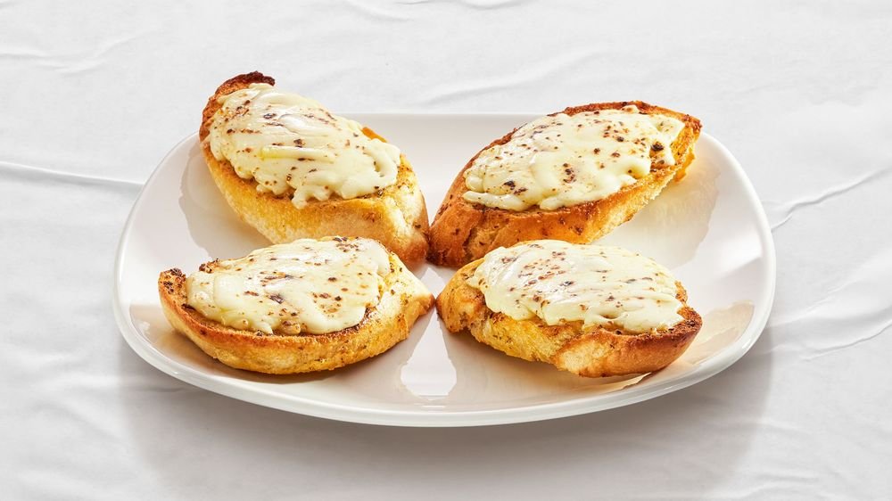 Garlic Bread mit Kräuteraufstrich, überbacken mit Mozzarella