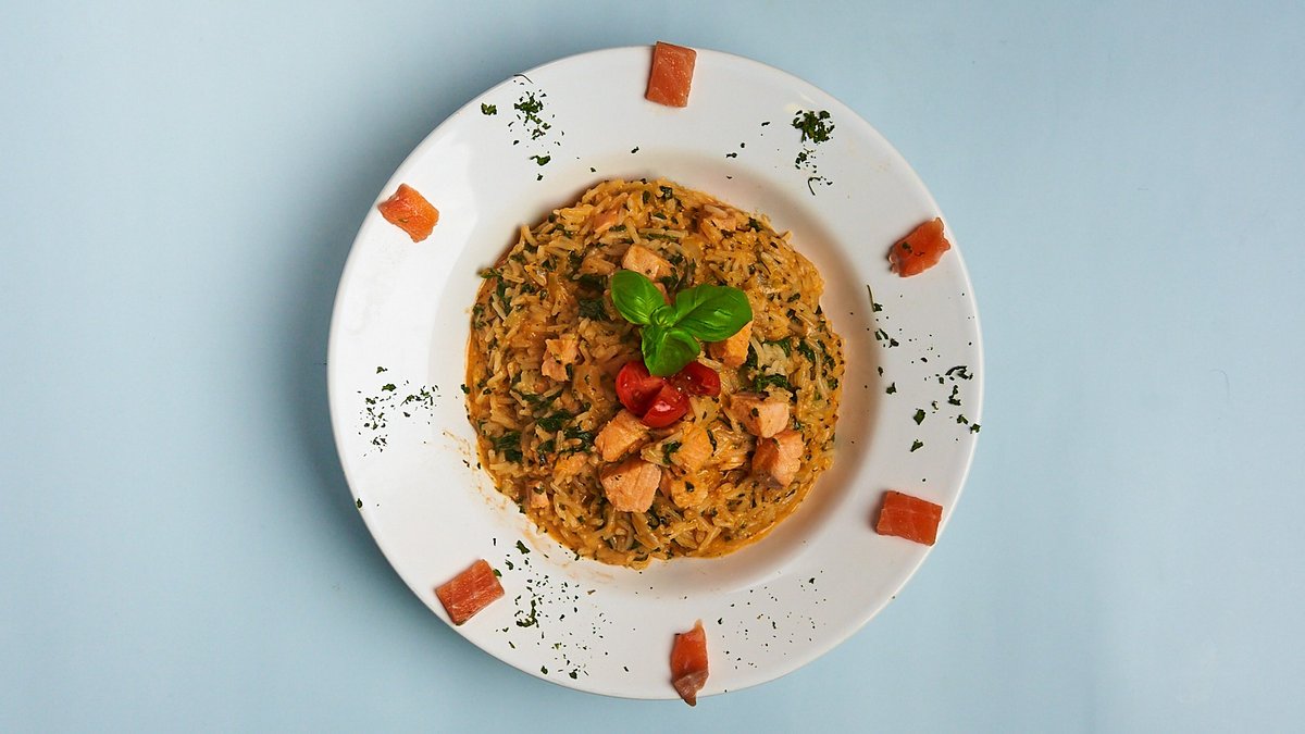 mit Spinat, Lachs, Knoblauch in Rosa -Soße Aufgrund der Art und Weise der Aufbewahrung kann das Produkt mit (verschiedenen) Nüssen in Kontakt kommen.