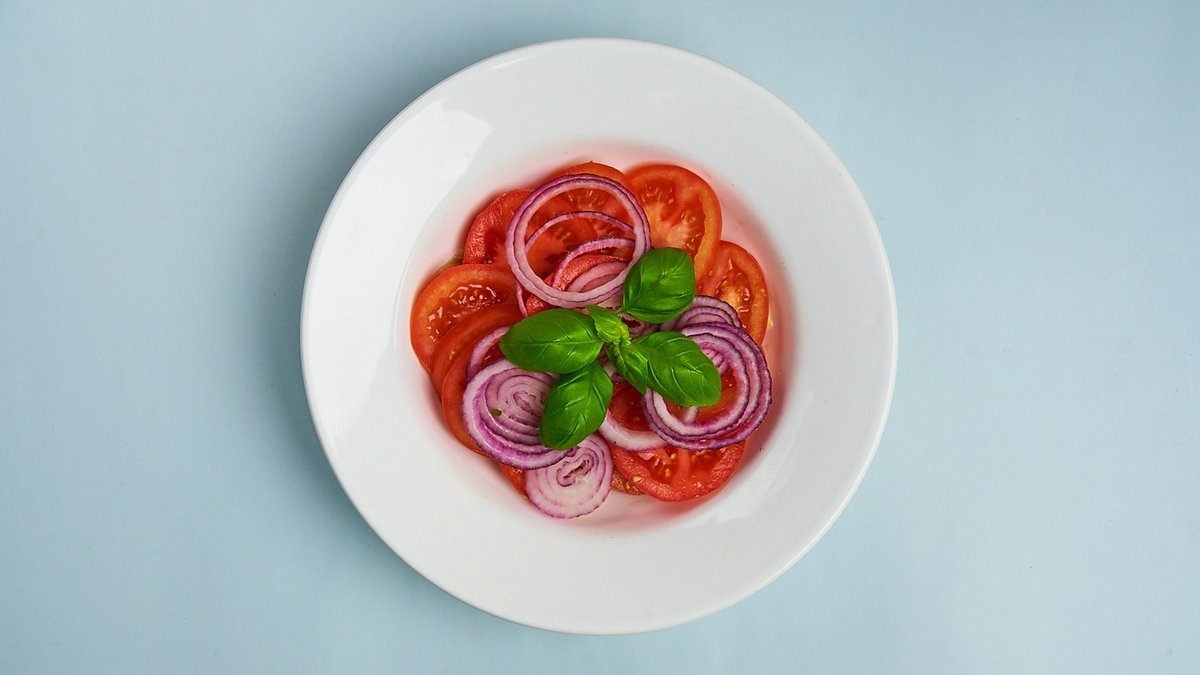 mit Thunfisch und Zwiebeln in Tomatensoße