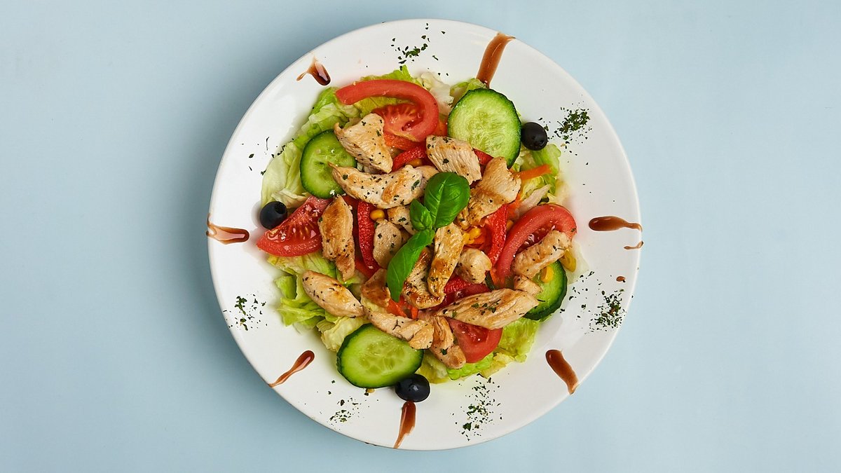 gemischter Salat mit Formfleisch, Putenschinken, Käse und Ei