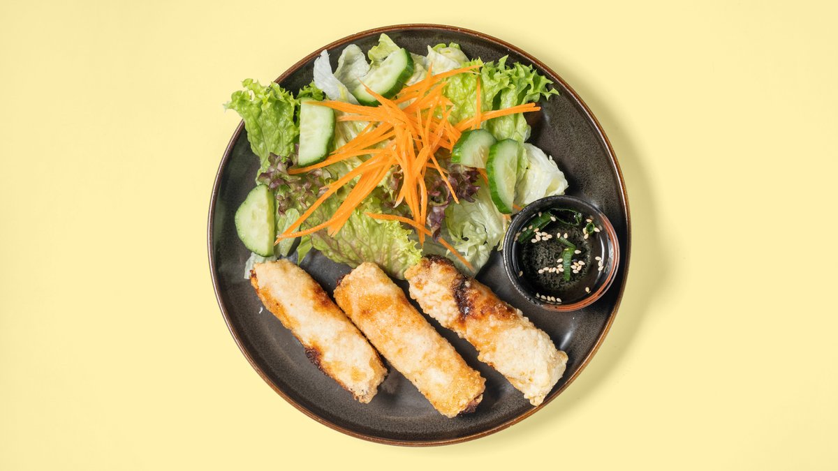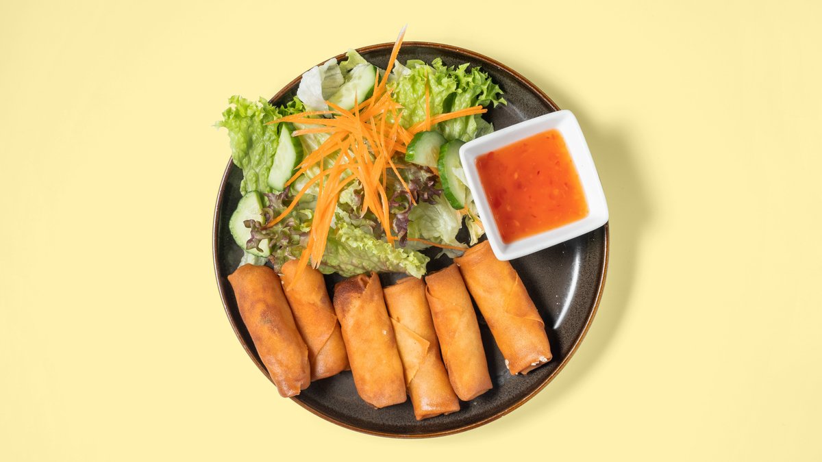 4 Stück Mini-Frühlingsrollen mit Sweet Chili Mango Sauce