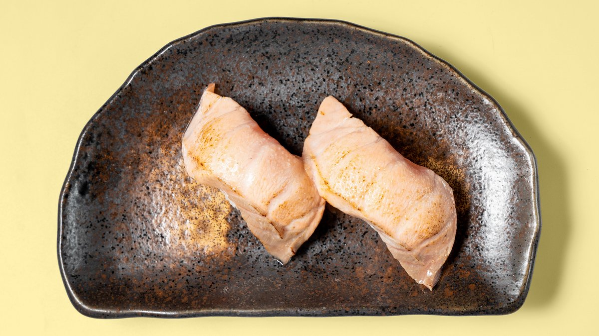 5 Stück gedämpfte Teigtaschen mit Hähnchenfleisch, Yuzukosho-Mayonnaise und Sweet Chili Sauce