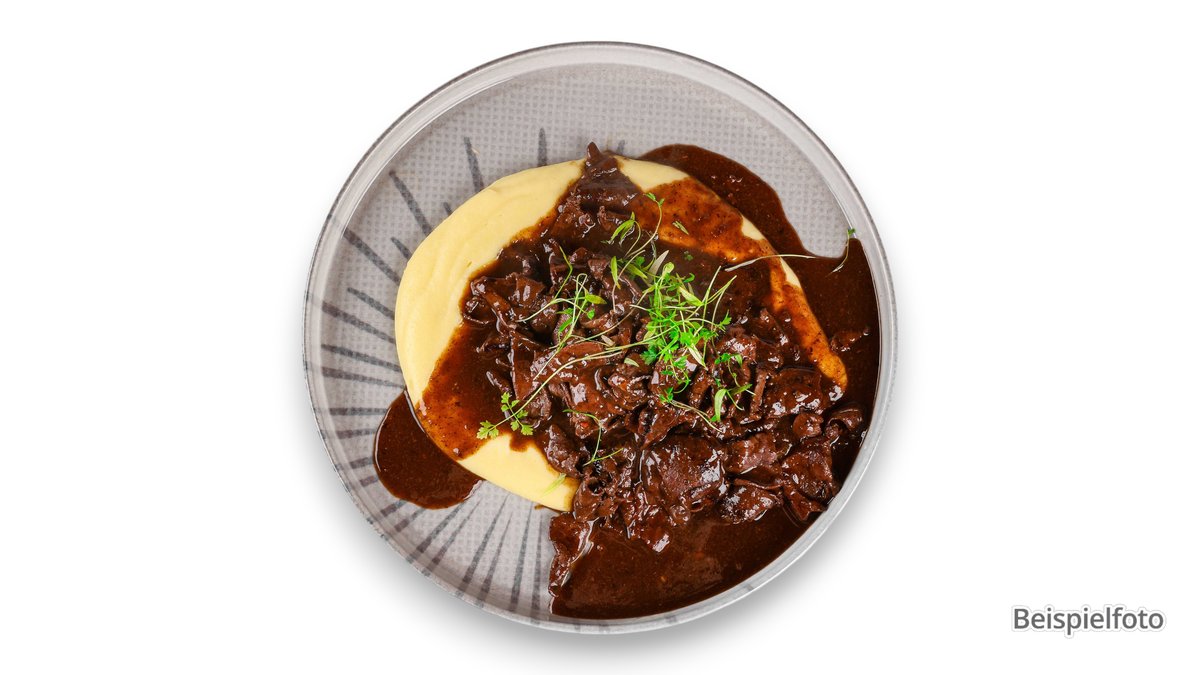mit Jungzwiebeln und Rotwein-Tomatensoße Enthält Alkohol, für Kinder und schwangere Frauen nicht geeignet
