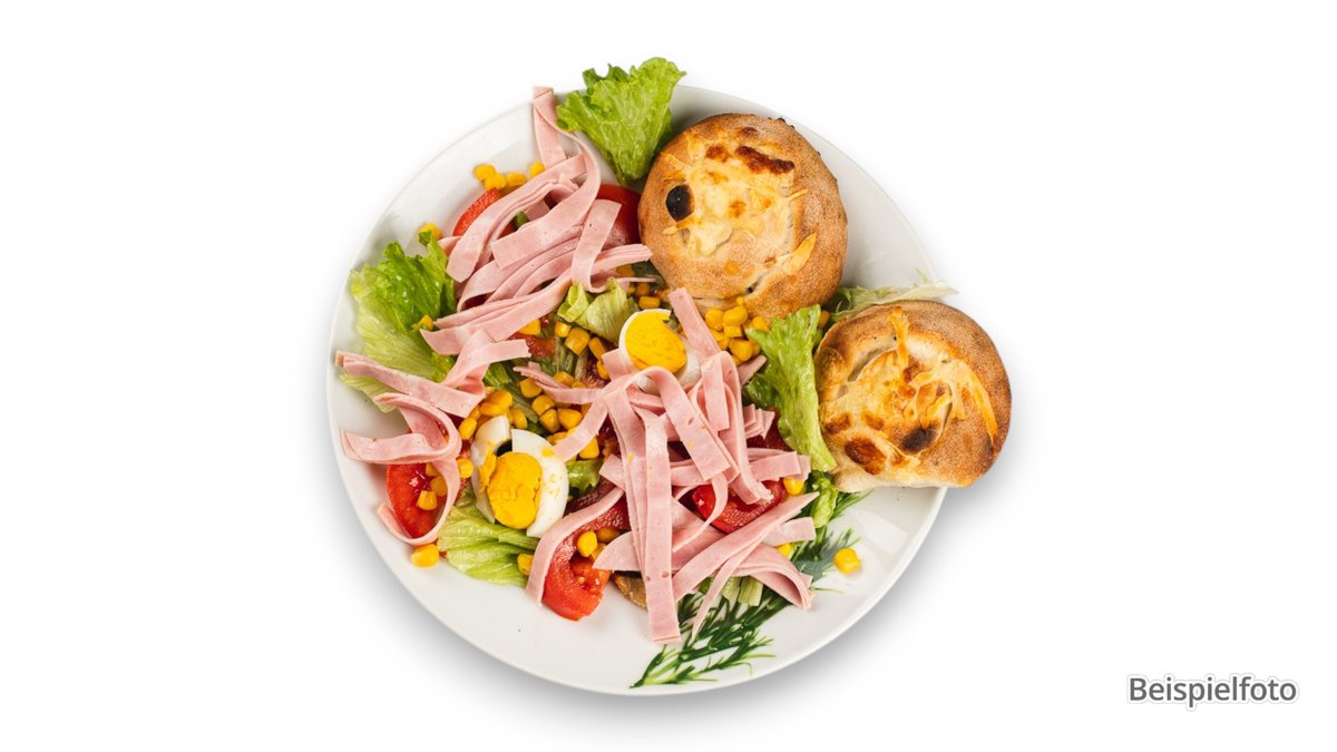 kleiner gemischter Salat mit Schinken vom Schwein, Käse, Ei und Thunfisch