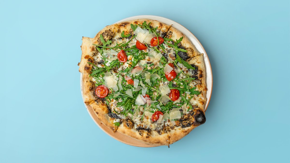 mit Bianca, Mozzarella, Trüffelcreme, Rucola, Kirschtomaten und Grana Padano