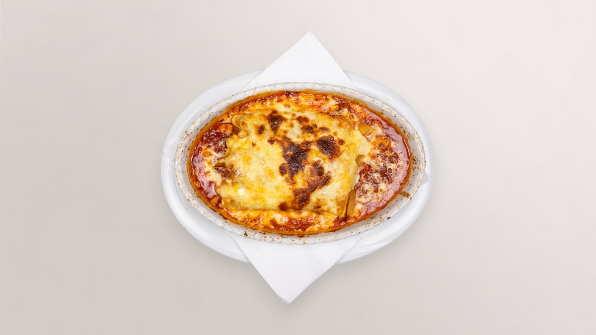 mit Hackfleisch vom Rind- und Schweinefleisch, Hirten Kochschinken vom Schweinefleisch, Champignons und Käse überbacken