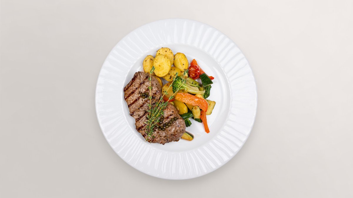 ca. 200 g argentinisches Roastbeef vom Grill mit Rosmarin-Kartoffeln und Gemüse