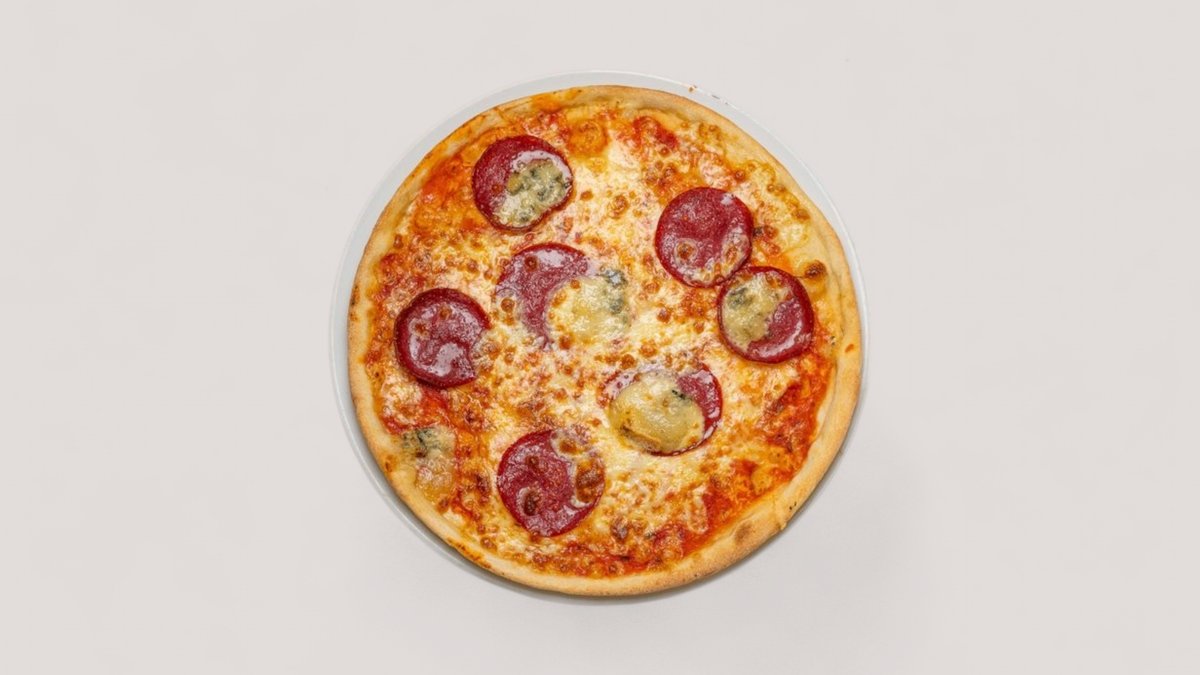 mit Tomatensoße, Käse, Rindersalami und Gorgonzola