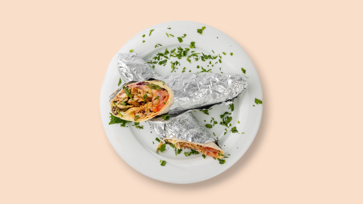 gegrillte Hähnchen-oder Kalbfleisch gerollt in hausgemachtem Lavas Wrap mit Knoblauch-Joghurt und Tomatensoße, Reis und Bulgur