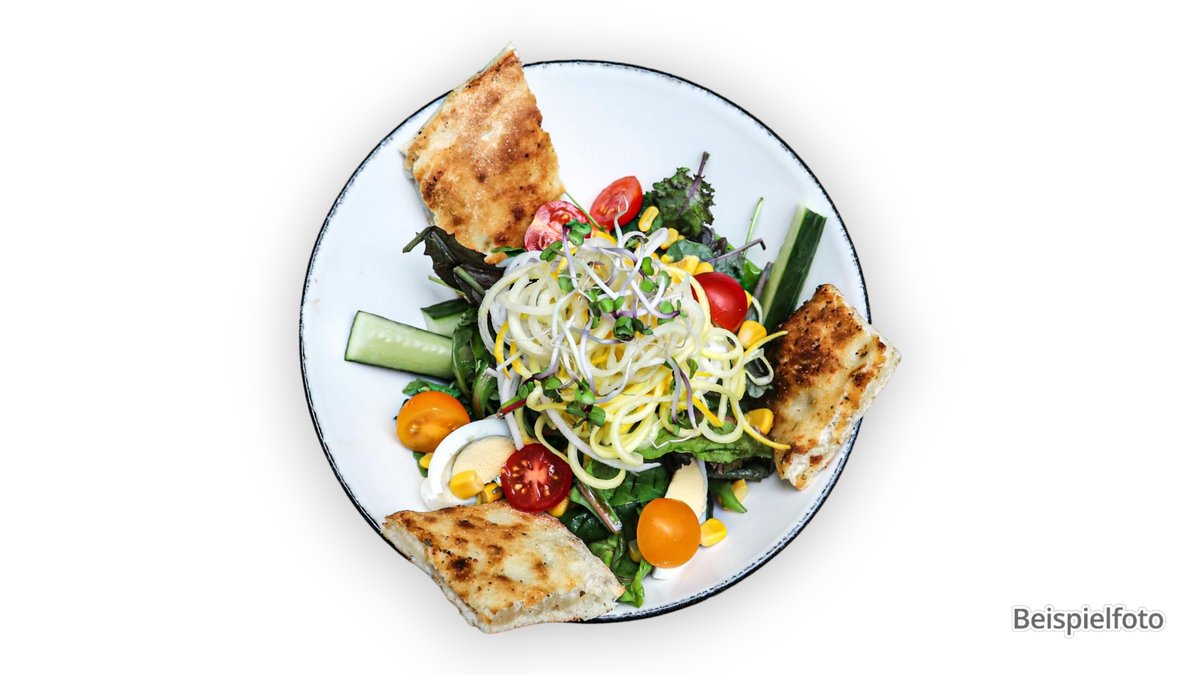 mit Eisbergsalat, Tomaten, Gurken, Mais, Karotten, grünen Bohnen, Weiß- und Rotkraut