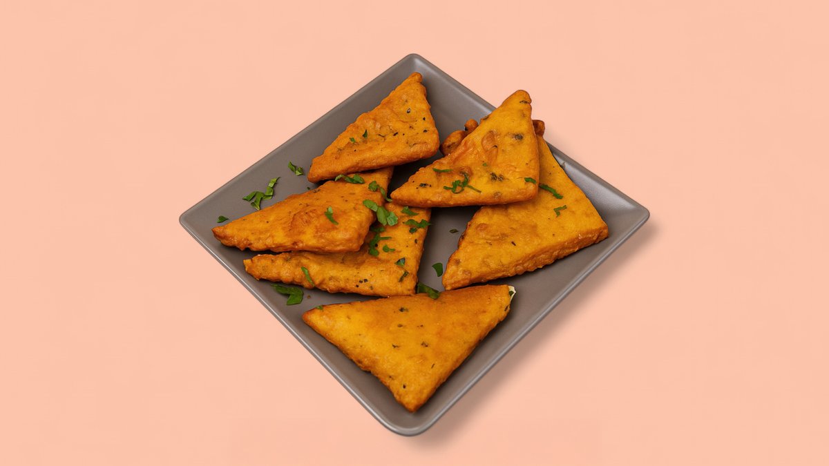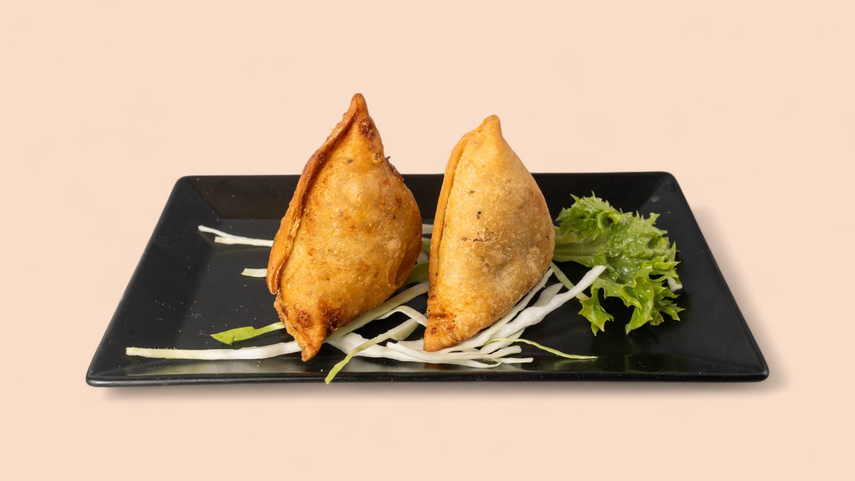 frittierte Teigtaschen mit Kartoffeln, grünen Erbsen, Cashewnüssen und indischen Gewürzen