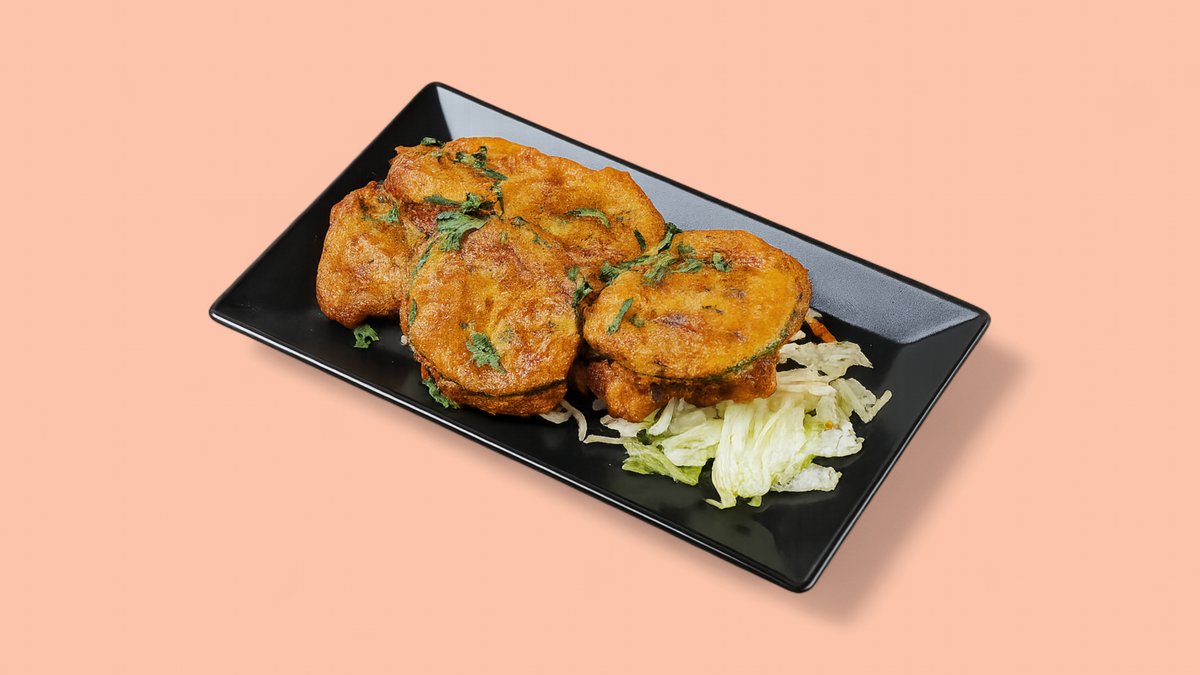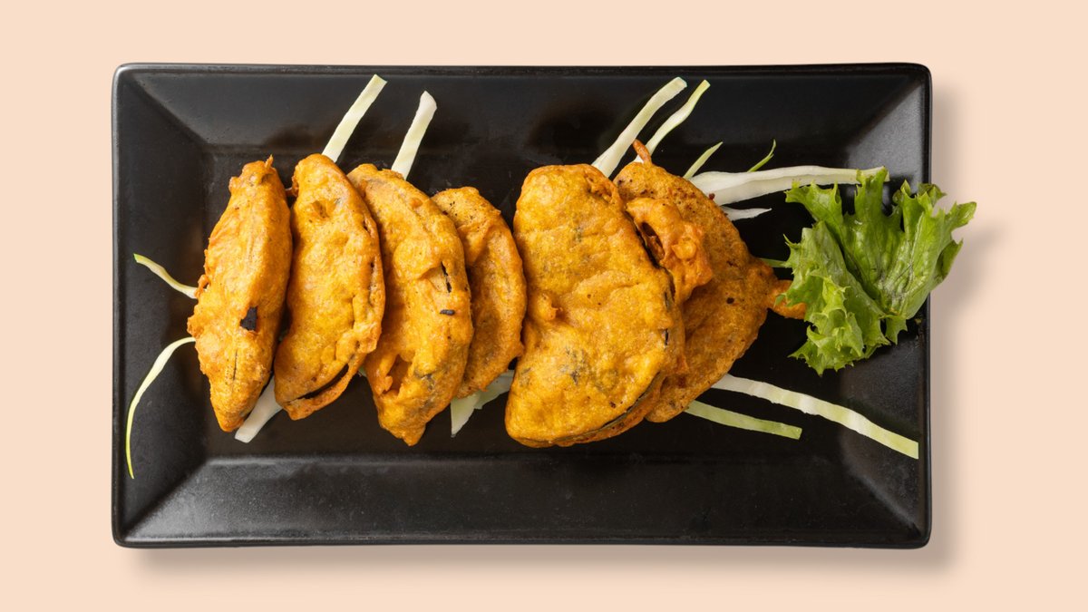 Auberginen, umhüllt mit Kichererbsenteig und anschließend frittiert