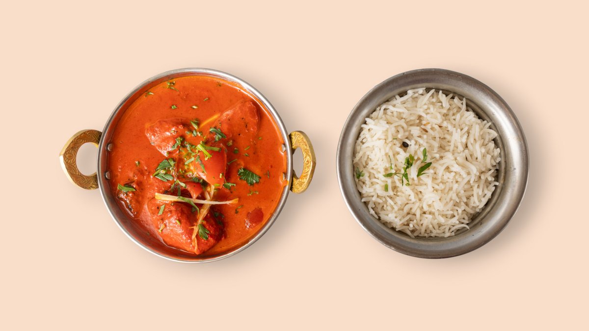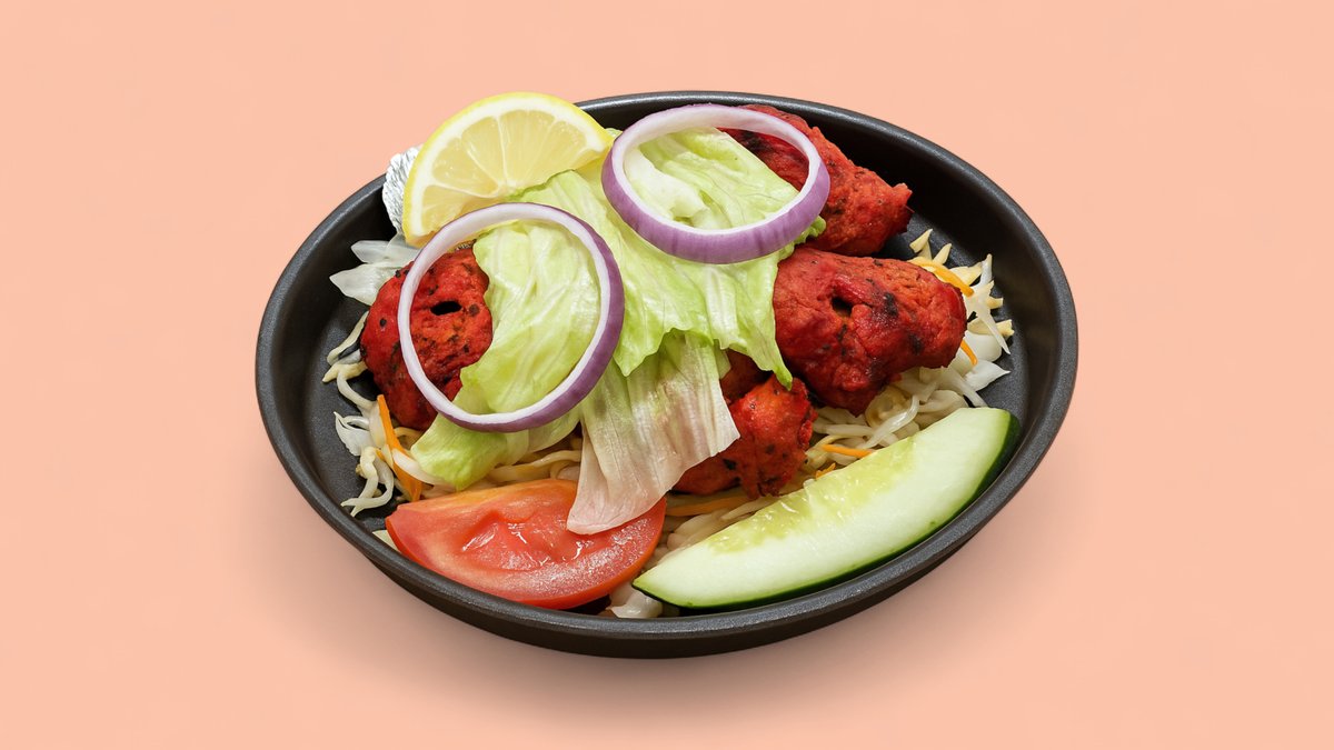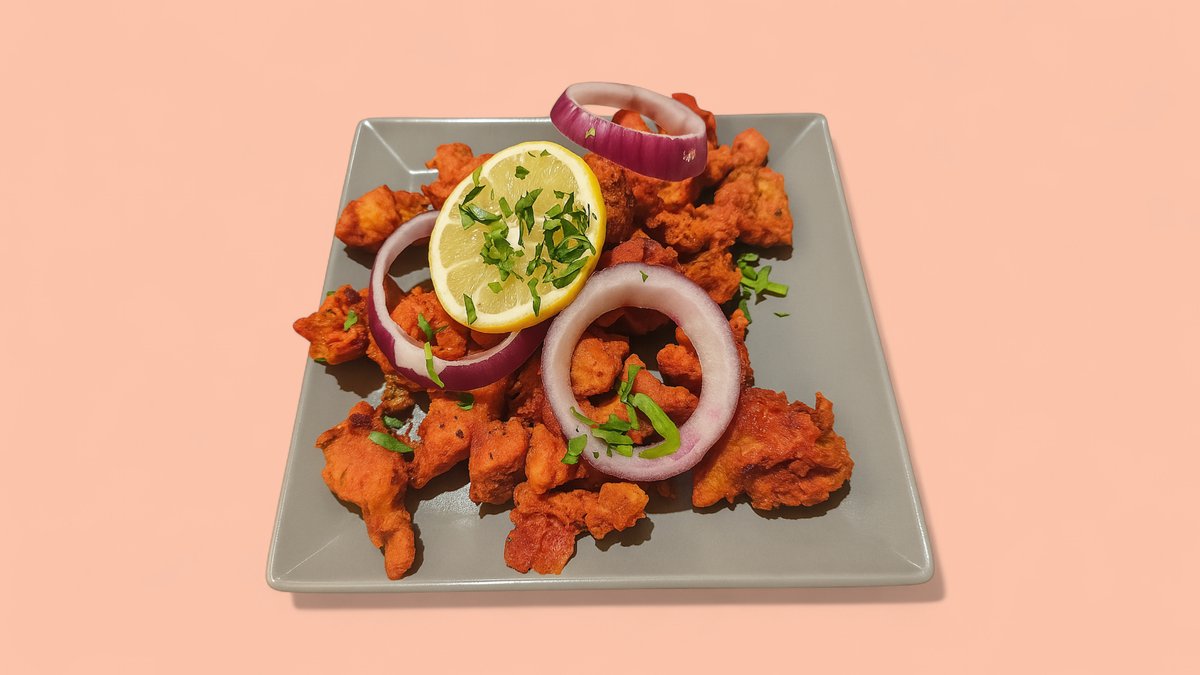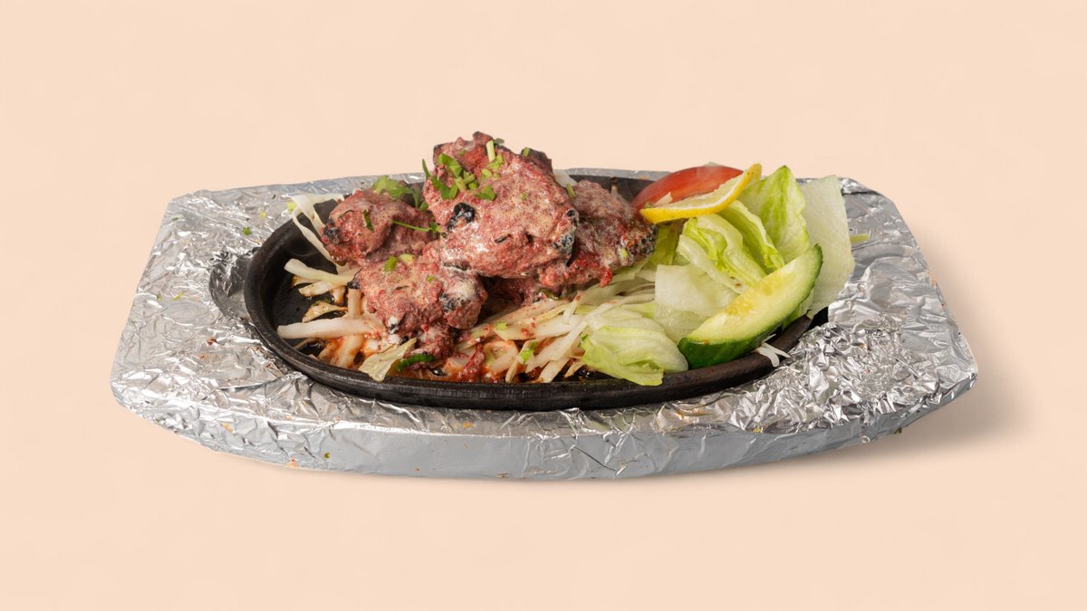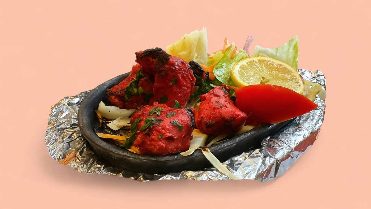 mariniert, gegrillt im Tandoori-Ofen, serviert in Honig-Butter-Tomatensahnesoße