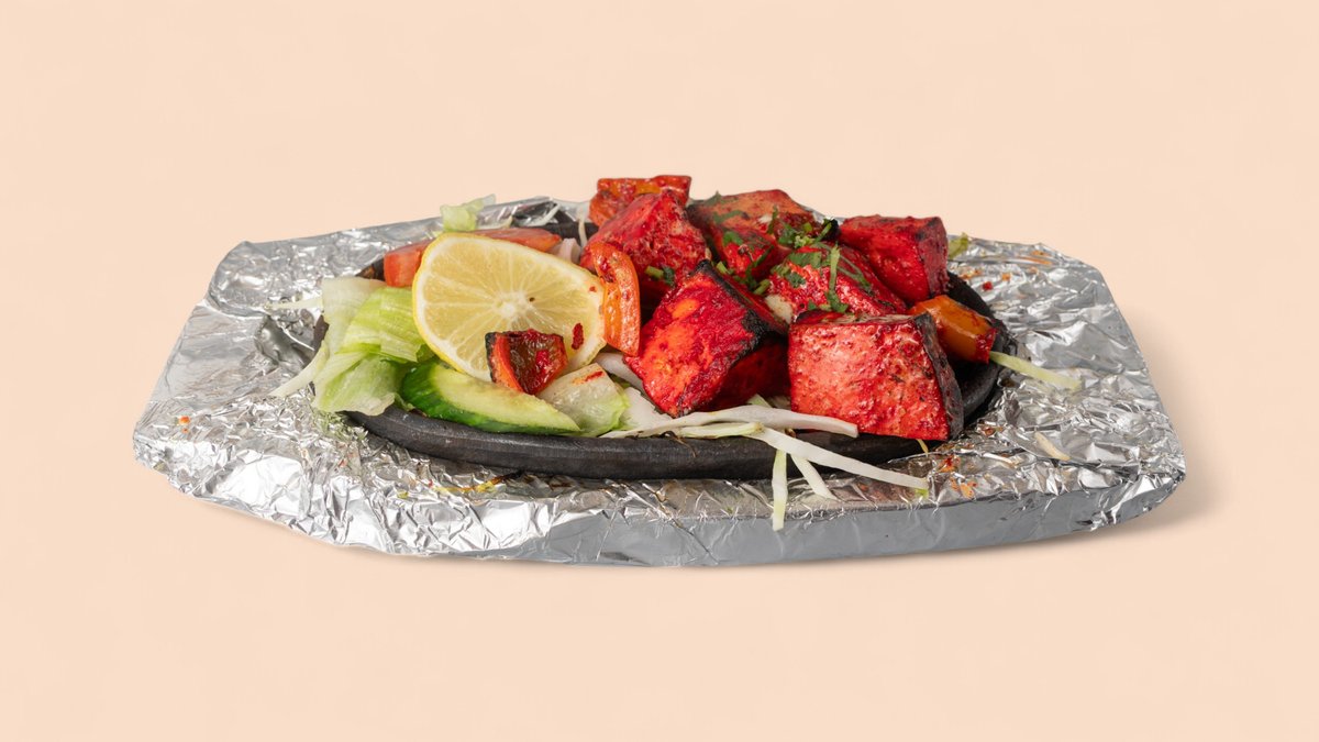 gegrillter Hüttenkäse in Honig-Butter-Tomaten-Sahnesoße, gewürzt im Tandoori-Ofen