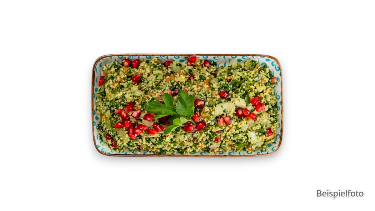 mit Gurken, Eisbergsalat, Zitronensaft, Granatapfelsirup und frittiertem arabischem Brot Enthält Süßholz - bei hohem Blutdruck sollte ein übermäßiger Verzehr dieses Erzeugnisses vermieden werden