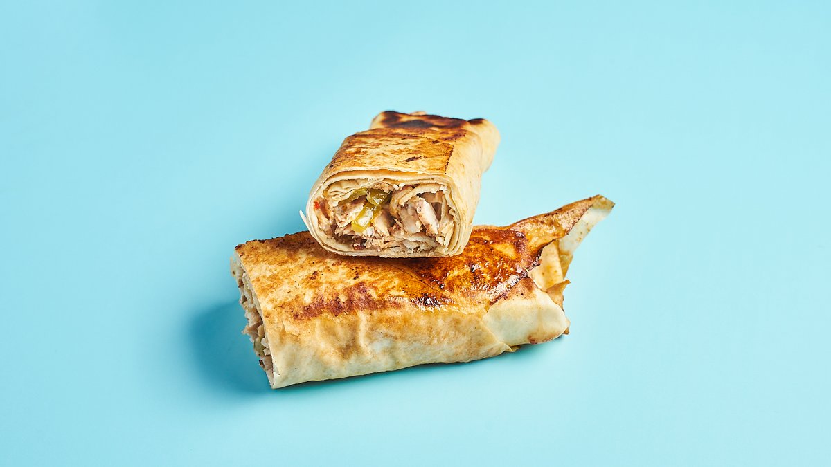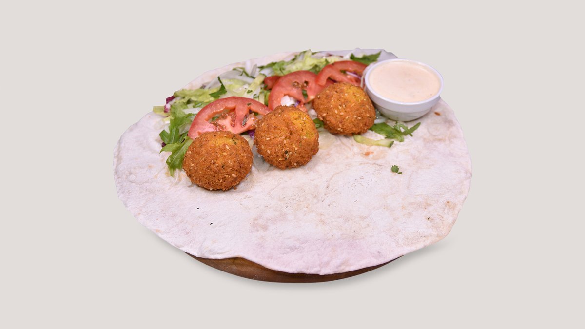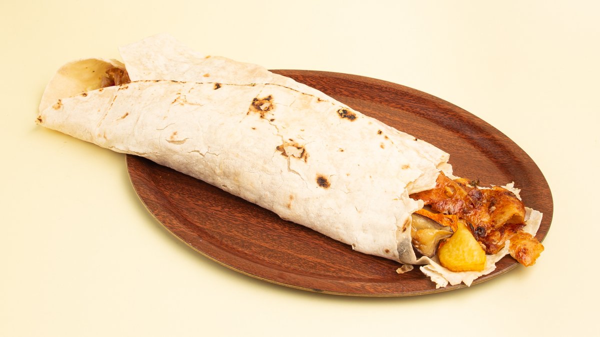 arabisches Brot mit Hähnchen, Pommes frites und Knoblauchsoße
