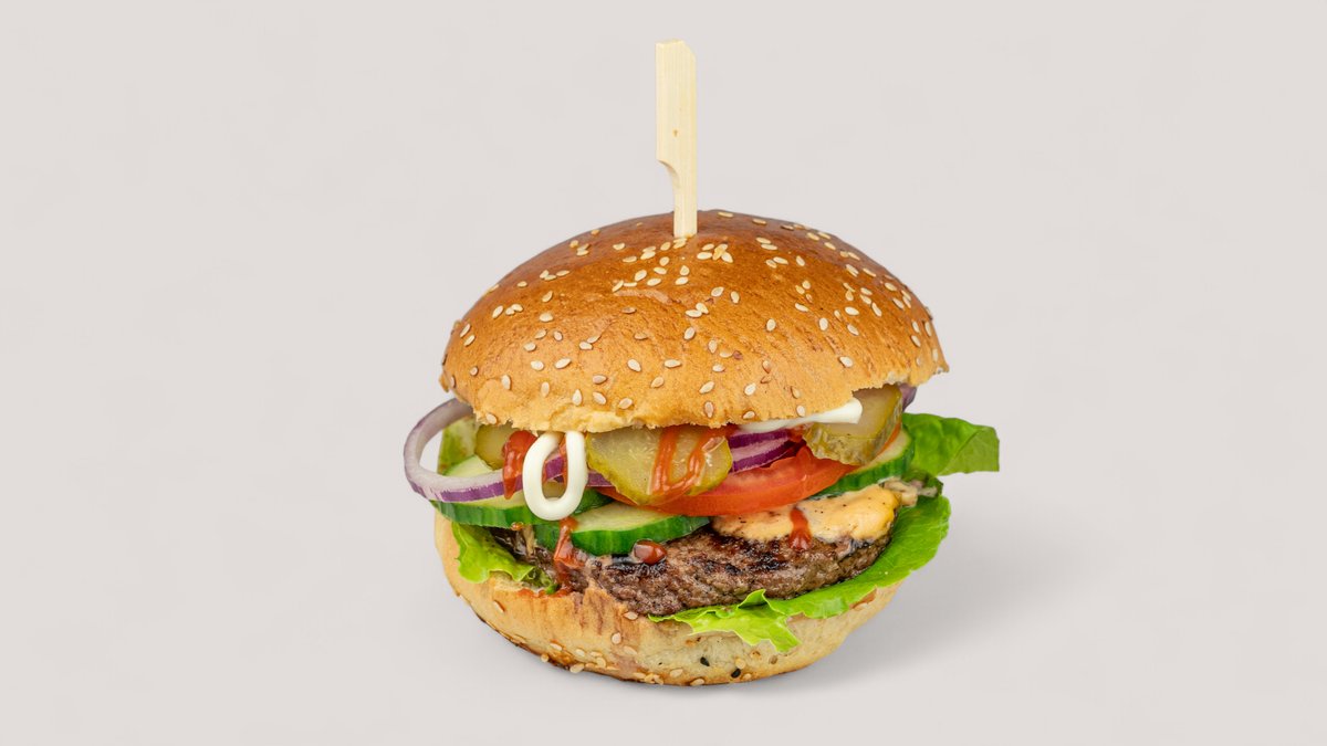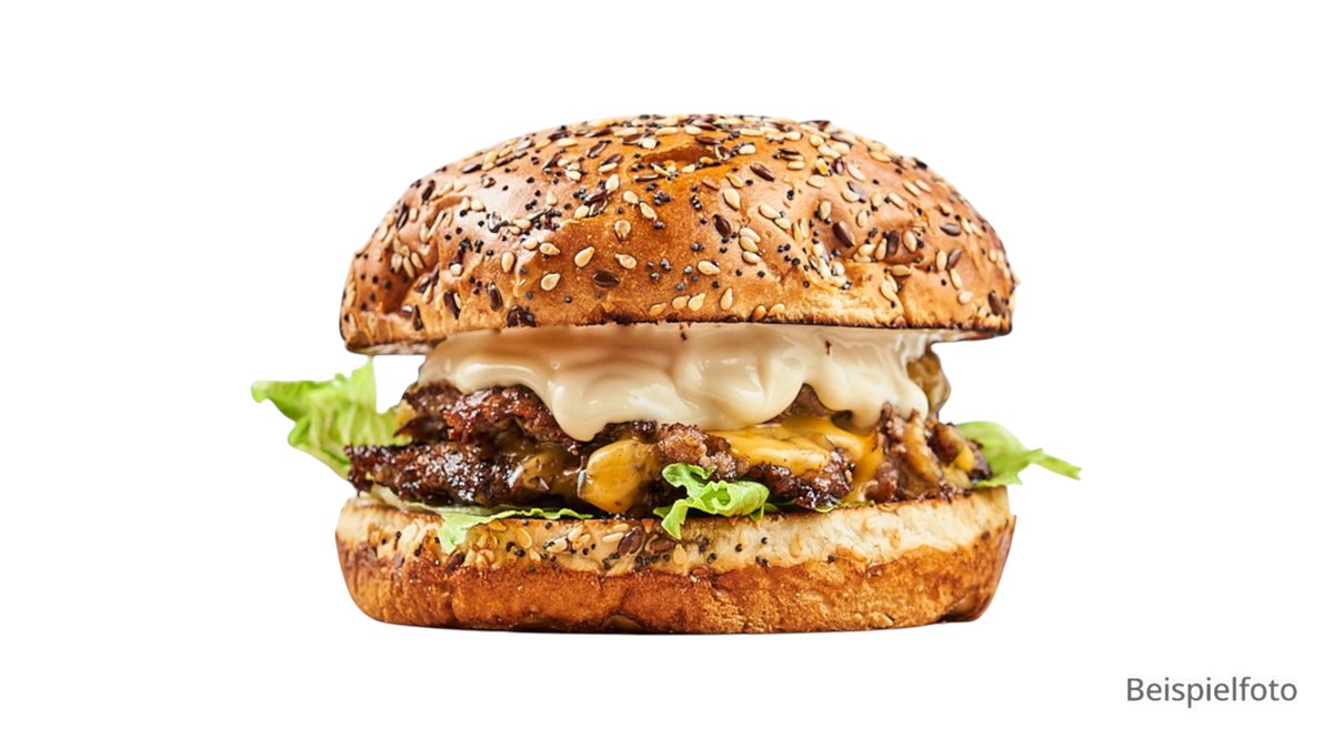 alle Burger werden mit Burger-Brötchen, Salat und Soße zubereitet