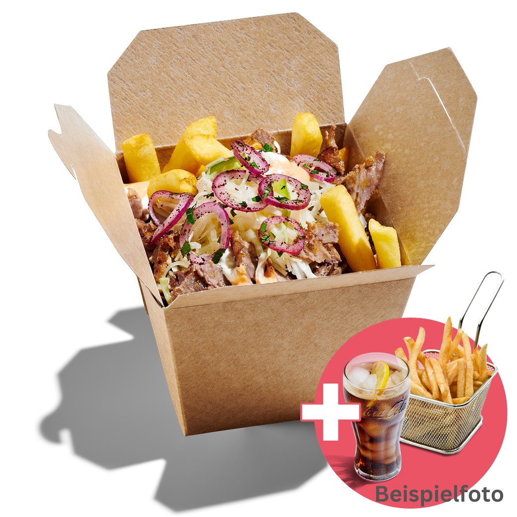 alle Menüs werden mit Pommes frites und einem Softgetränk 0,33 l deiner Wahl serviert („Döner Box Menü“ wird ohne Pommes frites serviert)